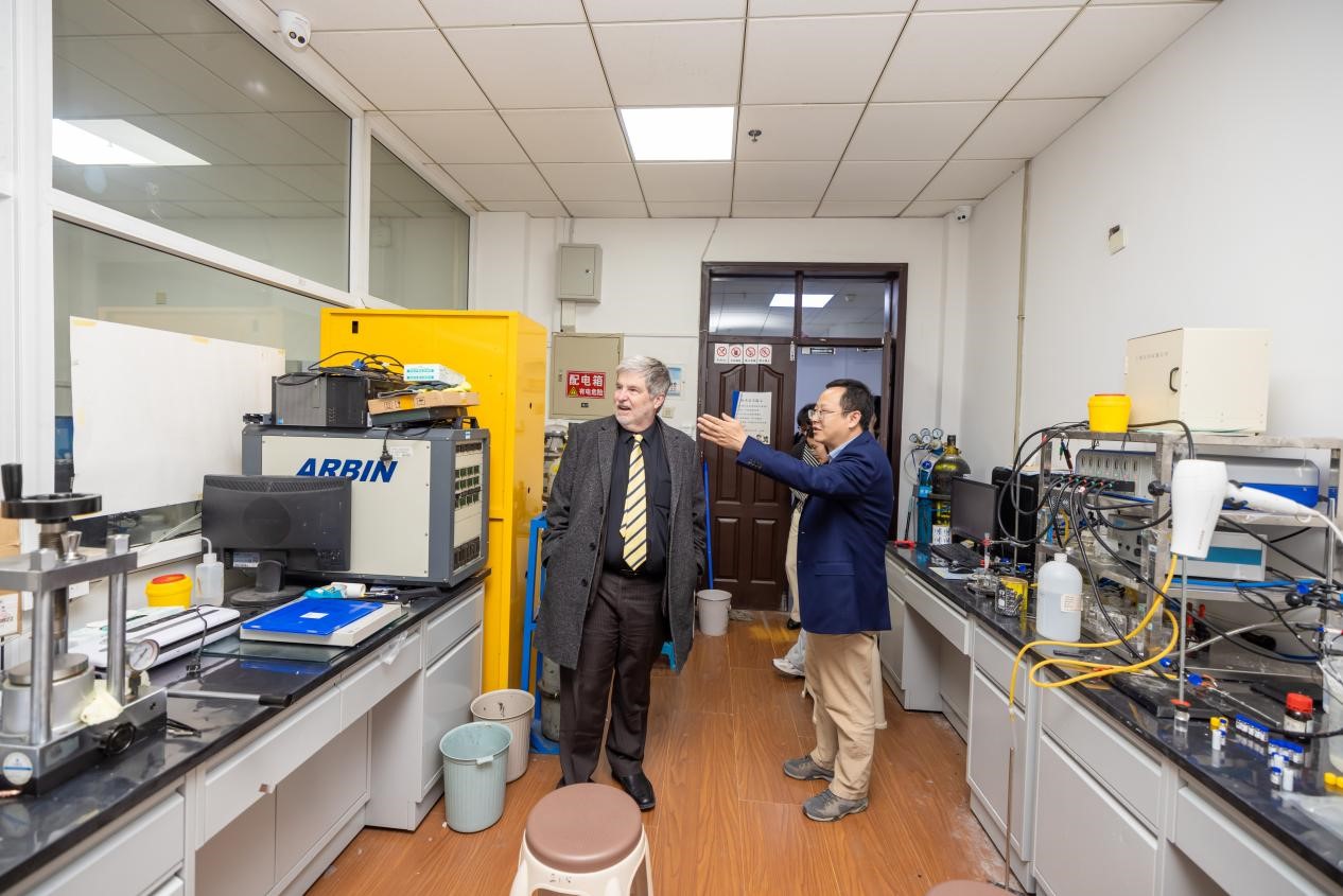 随后,代表团一行在副院长崔小强和重点实验室主任郎兴友的带领下,访问了我院位于逸夫机械材料馆和基础实验楼的汽车材料教育部重点实验室。双方围绕在材料学科领域开展科学研究和人才培养等合作事宜进行深入探讨,就未来继续拓展交流合作达成共识。