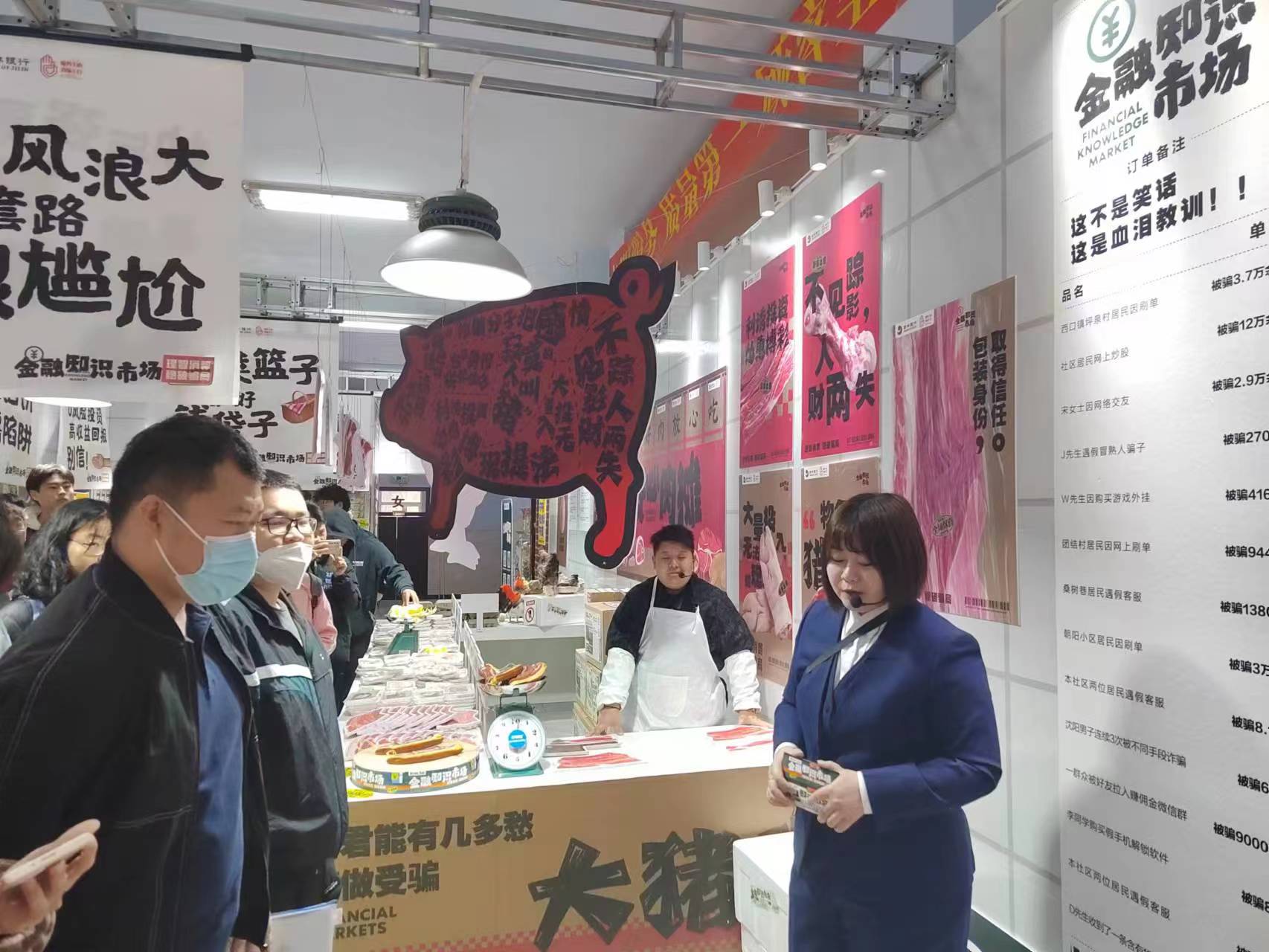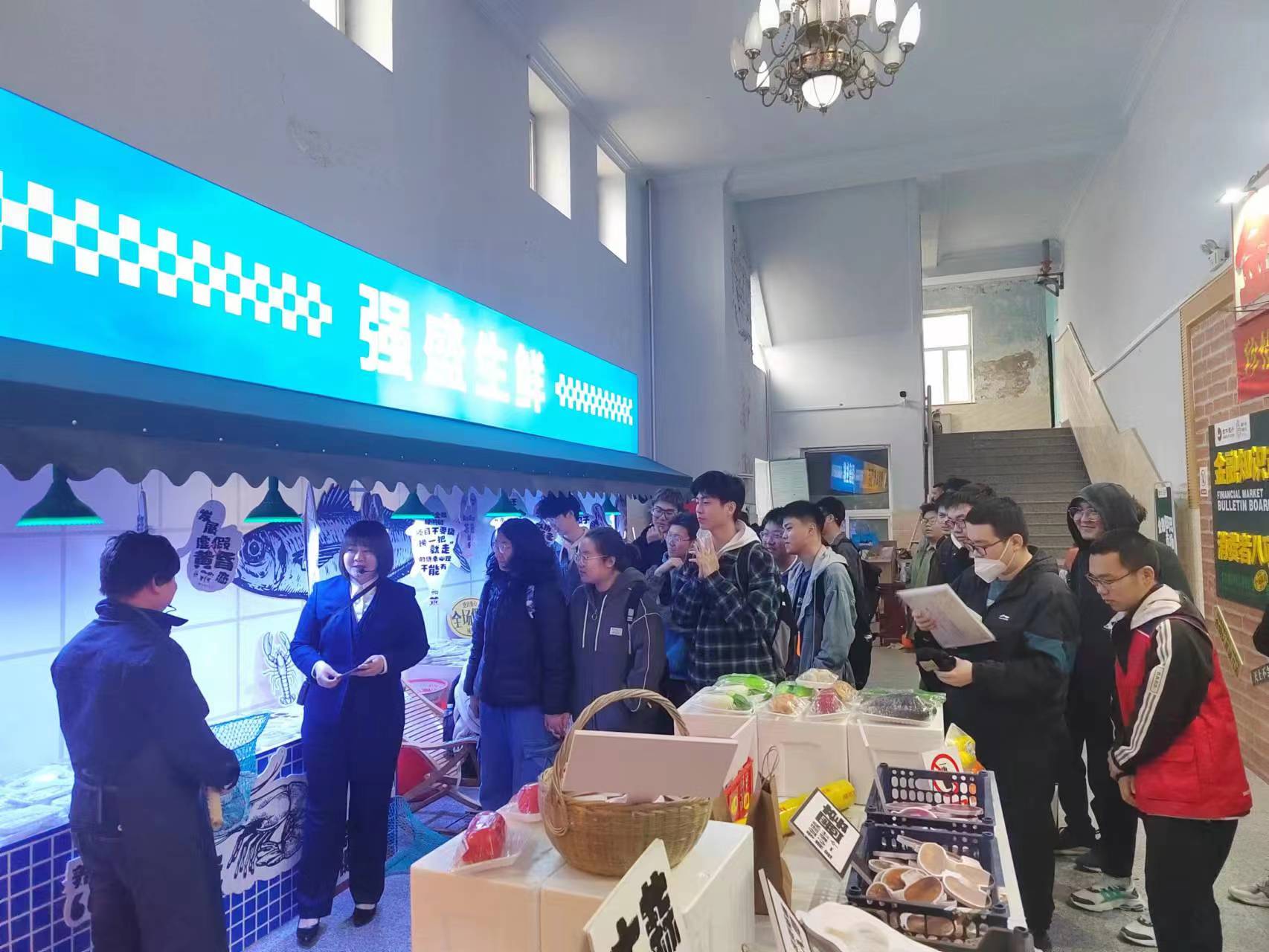 本次活动采用沉浸式体验形式进行宣传,根据电视剧“狂飙”中的场景搭建了金融知识市场。活动伊始,“金融知识市场管理员”与“强盛生鲜店长”以幽默的情景剧方式开场,提醒同学们要提高警惕,避免电信诈骗。接下来同学们参观了相关展区,包括水果店、熟食店、五金商店等,在展区中,讲解员老师或是以朗朗上口的顺口溜宣传反诈知识,如“常吃水饺和汤圆,提防欺诈被骗钱;酱油蚝油菜籽油,骗子舌滑嘴也油“;亦或是以谐音梗形式来提醒大家理智消费,谨防消费陷阱,如莫名电话清远“梨”,新鲜骗“橘”,小心“柚”惑等。随后,由东区保卫办田老师为同学们讲解了同学们身边发生过的真实案例,让同学们真切感受到反诈防骗与每个人都息息相关。