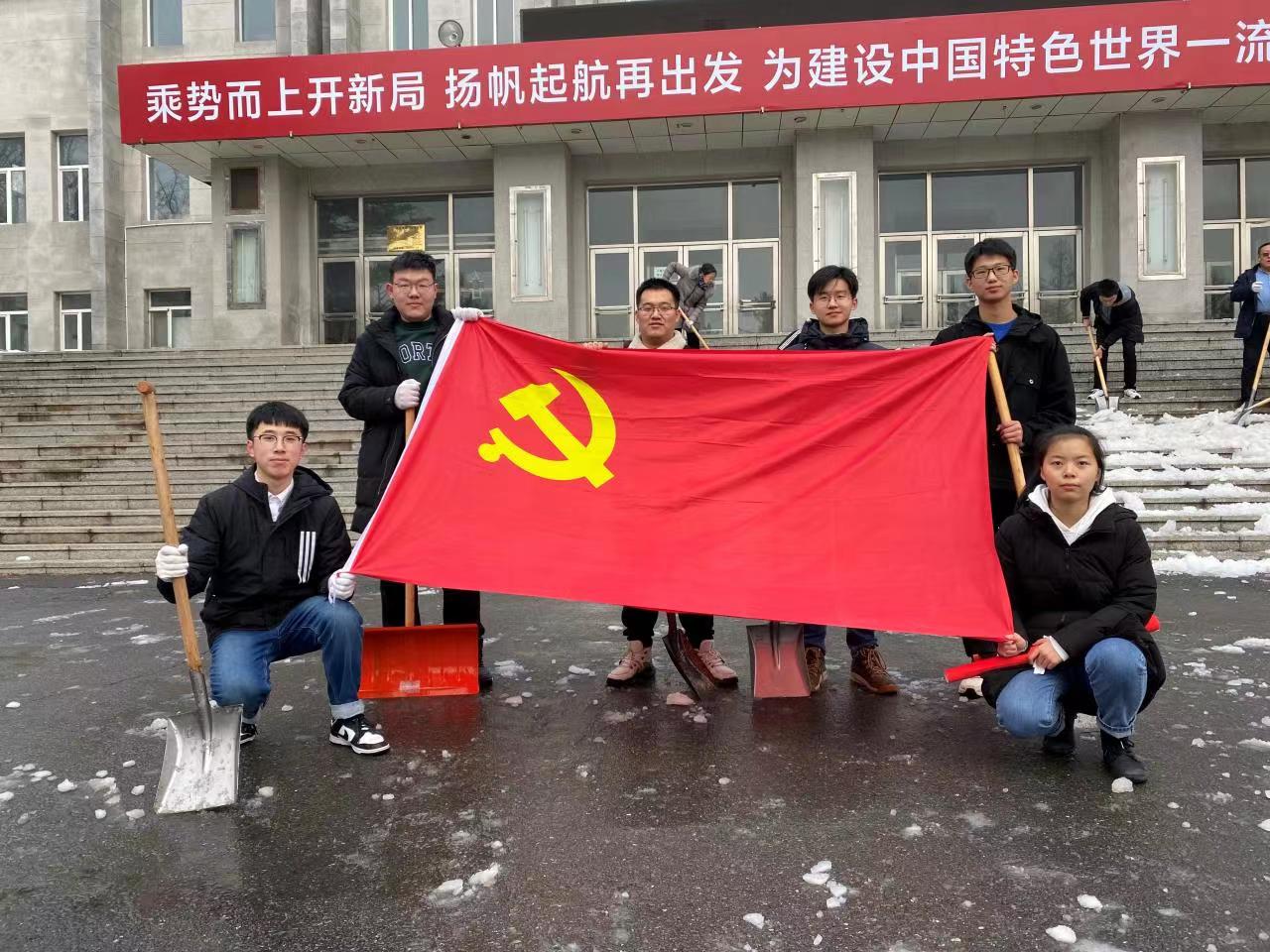 活动期间,同学们拿着铁锹、雪铲等清理工具开始清雪除冰工作,虽然积雪融化导致道路湿滑,但是同学们不畏寒冷、分工合作,用铲子一次次地铲入冰层缝隙处,以最快的速度将积雪推至道路两侧,为师生们开辟了一条安全畅通的方便之路。热火朝天的劳动场面,让严寒的天气显得暖意浓浓,忙碌的身影构成一道亮丽的风景线。
