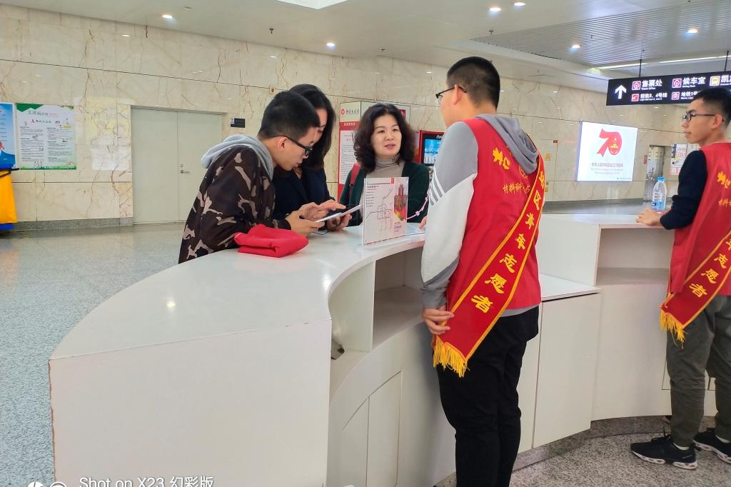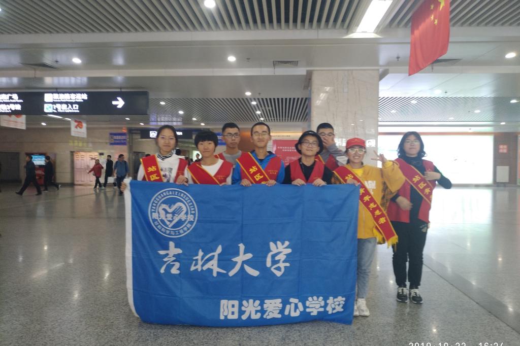 于10月22日组织2019级新生志愿者在长春市火车站开展“青春志愿行,温暖回家路”志愿服务活动。