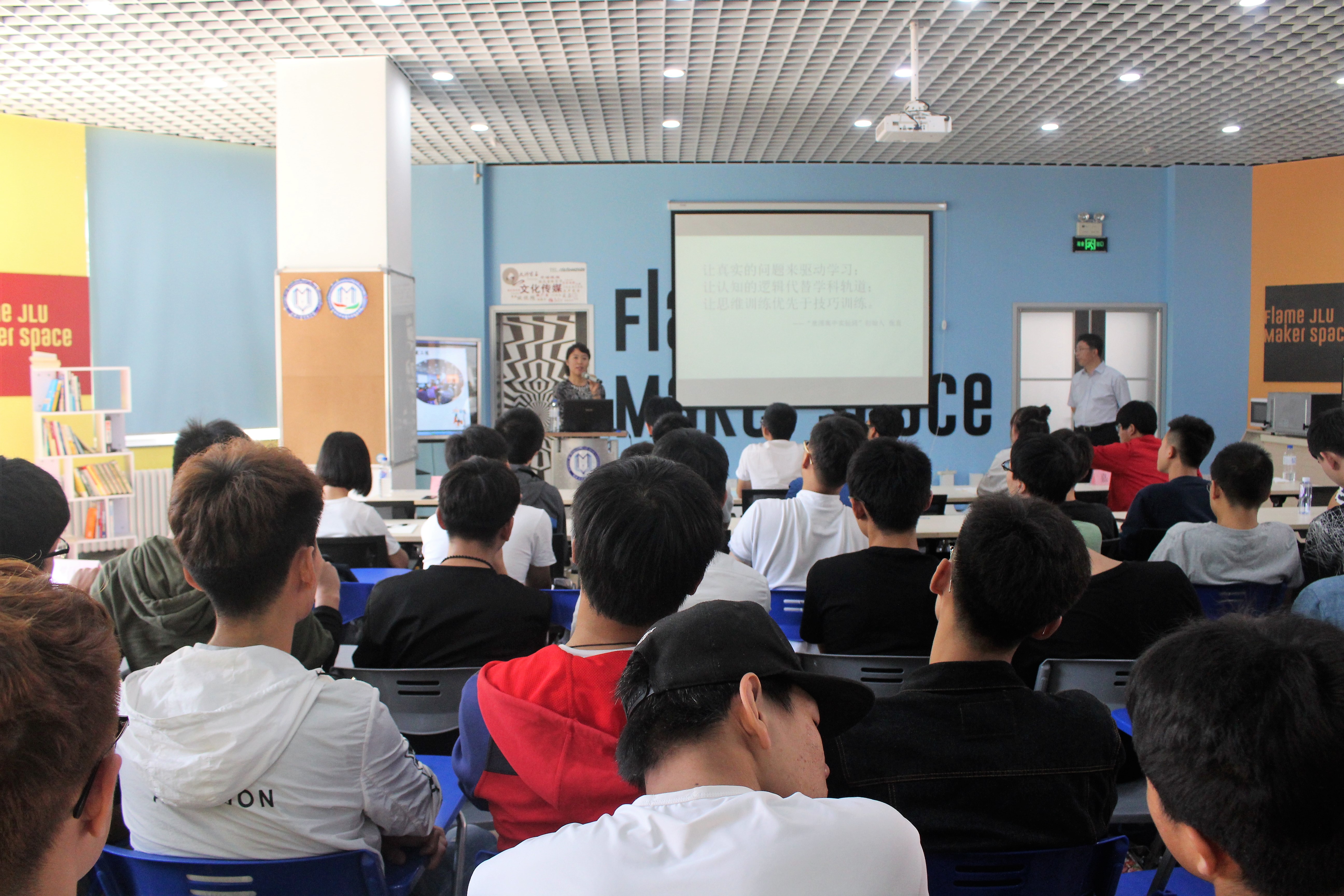 南岭校区创客空间举办的“结合时代特点、创新培育人才”讲座。