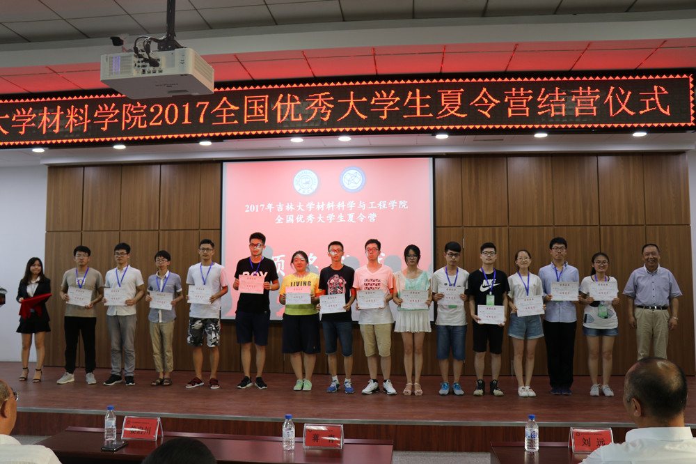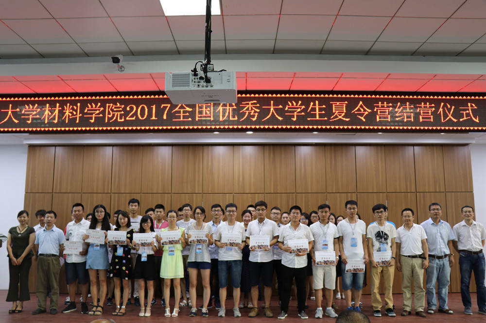 全国优秀大学生夏令营结营仪式。朱永福副院长主持了结营仪式,总结了四天以来的夏令营活动,肯定了夏令营活动达到的效果并对所有参加夏令营活动的营员以及志愿者表示了由衷赞赏,教师代表、学生代表进行了发言。学院领导和优秀教师为所有夏令营营员颁发了结营证书,为优秀营员颁发了优秀营员证书以鼓励他们进入材料学院继续深造;还为首届“智研杯”学术海报设计大赛获奖者进行了颁奖;同时为志愿者颁发了优秀志愿者证书,以肯定他们为夏令营活动的付出。