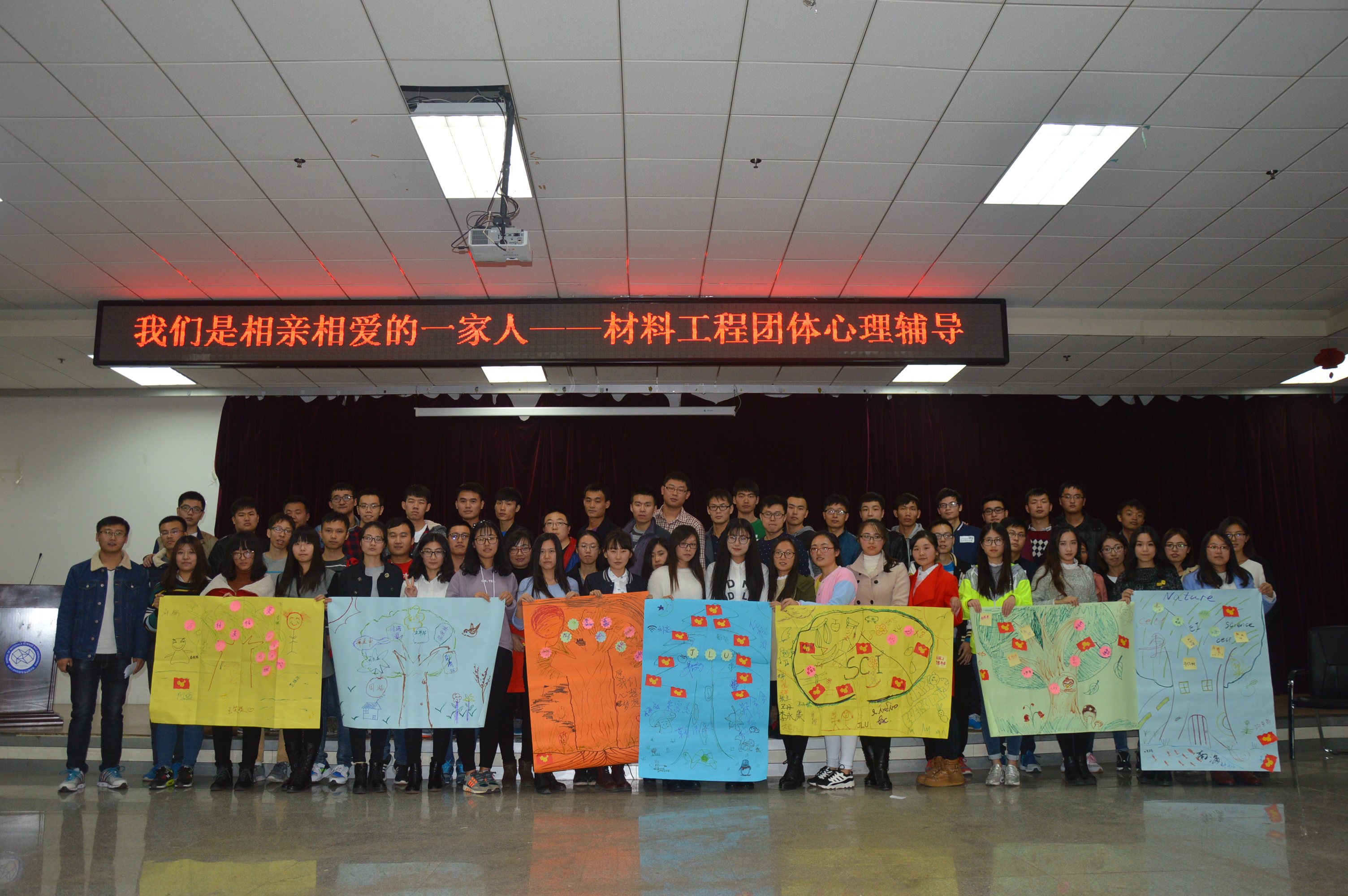 于2016年10月15日-23日在材料馆八楼报告厅和唐敖庆楼D429教室,以材料物理与化学、材料学、材料加工工程和材料工程四个专业为班级分别进行了主题为“我们是相亲相爱的一家人”研究生团体心理辅导活动,本次团体心理辅导由朋辈心理辅导员和研究生新生班长组织,2016级全体研究生新生参加。旨在引导2016级新生敞开心扉、肯定自我、超越自我、建立互信并增强团体凝聚力。