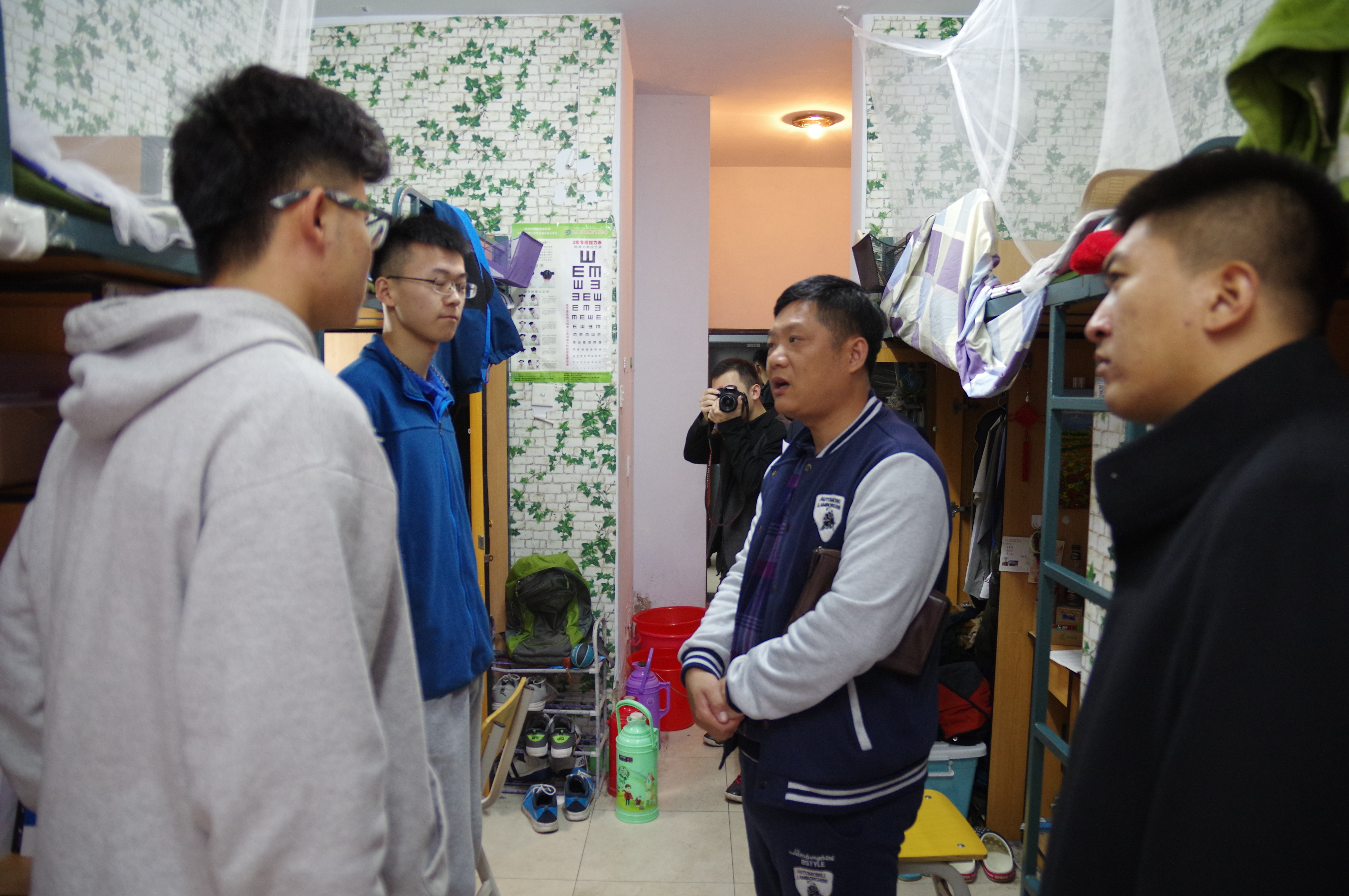 活动在十一公寓展开,李书记和老师们首先走访了2013级学生的寝室,并和他们亲切交谈,在访问过程中发现,学生精神状态很好,学习与寻找工作进展顺利,寝室卫生普遍情况较好,个别寝室存在卫生不合格现象,张老师对这些寝室的学生进行了督促。随后对学生二公寓进行了走访,因2014级学生寝室较小,物品较多,摆放存在问题,但学生寝室依然干净卫生。在对十三公寓2015级学生寝室的访问中,李书记和佟老师均表示满意,学生在行为表现、寝室卫生及物品摆放上普遍表现良好。在此次检查中2016级学生表现最为突出,同学们文明礼貌,寝室干净整洁,装饰丰富多彩,将寝室装扮出家的感觉。