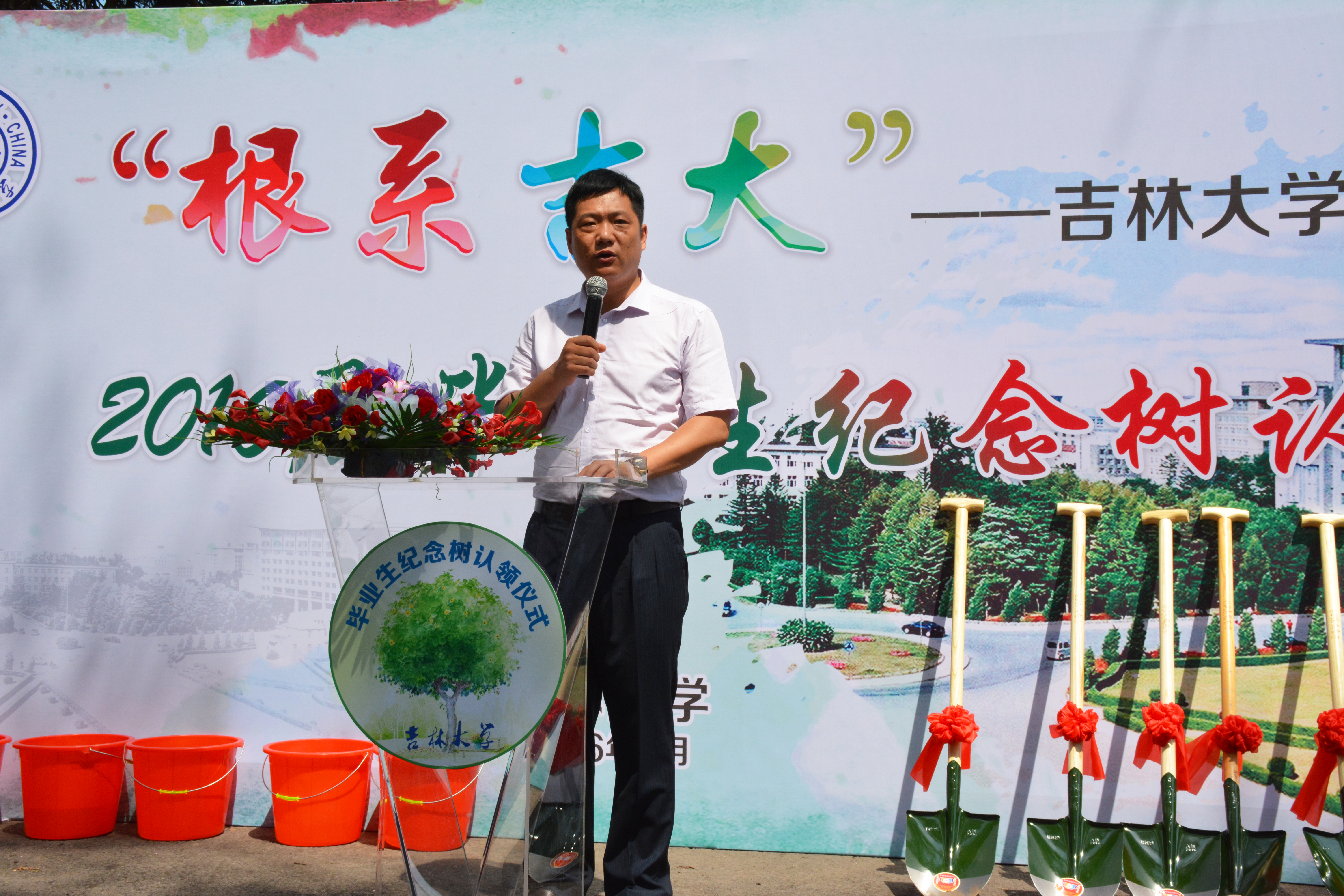 本次仪式首先由党委副书记李东生致开场辞,他向在场毕业生代表简单介绍了本次纪念树认领仪式的意义和目的,希望同学们能够感恩母校为母校种下一抹绿色,增进同学们与母校之间的情感联系,同时也是母校送给2016届毕业生的礼物,寄托着吉大对所有学子的期盼和美好祝愿。随后,周岩松书记代表材料学院向在场毕业生代表表达了最衷心的祝愿和期盼,周书记说,无论大家走多远,黑料718