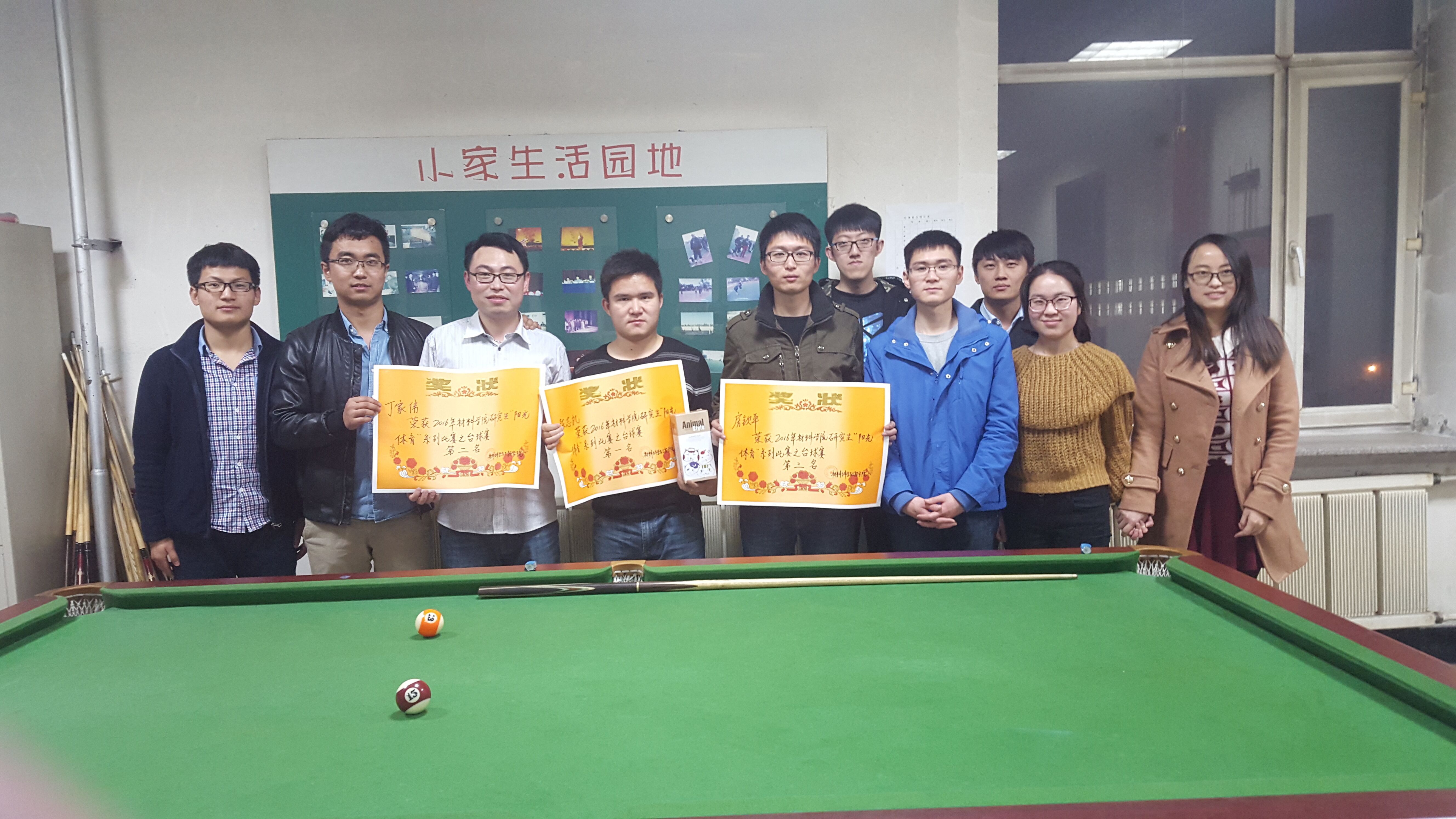 本次台球比赛得到了学院领导与老师的大力支持和学院同学的积极参与。以比赛的形式增进了学院台球爱好者间的了解与交流,丰富了学院硕士生、博士生的业余生活,激发了学院同学对体育运动的热爱,取得了预期的活动效果,获得了圆满成功。