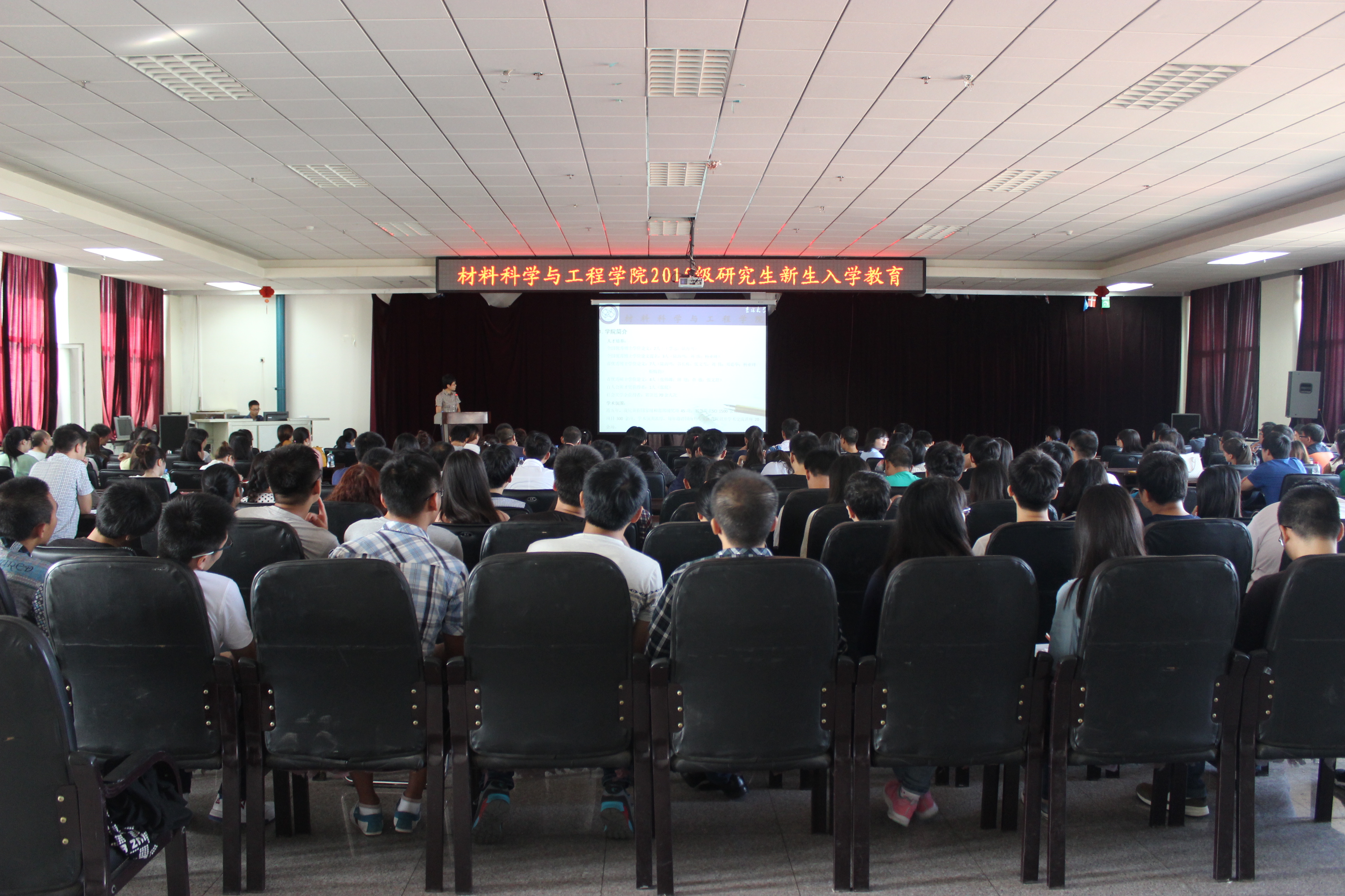 2015年8月31日,我院在逸夫机械材料馆八楼报告厅举行2015级研究生新生入学教育系列讲座。本次入学教育系列讲座共分四场,分别为:材料学院党委副书记于雅琳老师作入学教育专题讲座、公共卫生学院胡远超博士作心理健康教育专题讲座、东区保卫办公室消防科张春蕾老师作消防安全教育专题讲座以及东区综合办治安科于珺科长作综合治安教育专题讲座。材料学院2015级全体博士、硕士研究生参加了本次入学教育系列讲座。