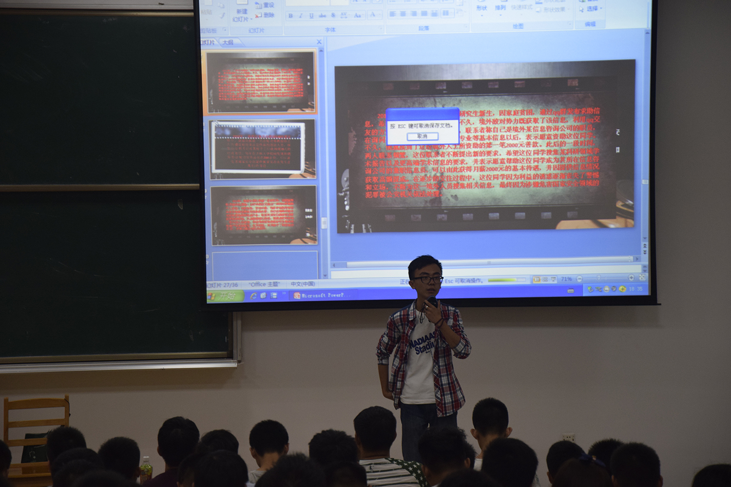 为了加强新生的安全防范意识,9月2日晚6点,材料学院在逸夫教育大楼B110面向2015级全体新生举办了大学生安全教育讲座。本次讲座由黑料718