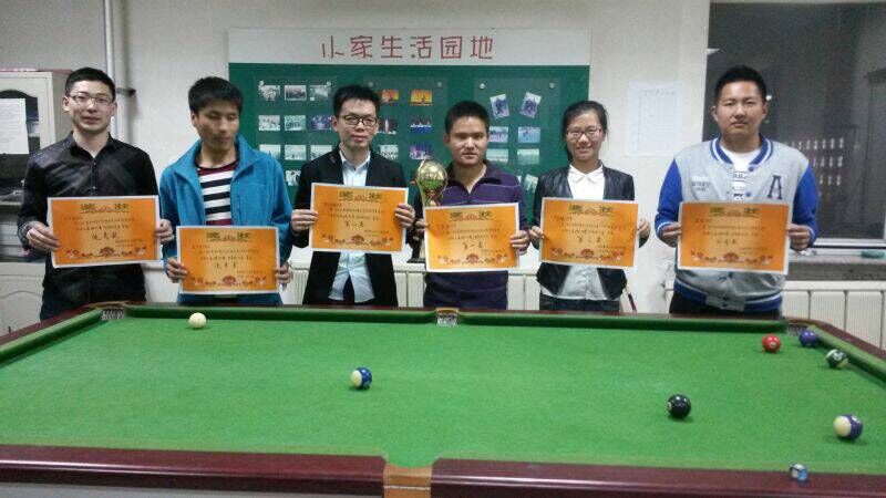 在学团委各位成员的共同协作之下,桌球赛顺利拉开帷幕。竞赛规则遵循国标普尔八球(黑八)个人赛的赛制,按照抽签的结果决定的分组结果正式开始。比赛初赛阶段采用小组赛,复赛采用淘汰赛,决赛采用循环积分赛,共有近30名同学参加了这次竞争激烈的角逐。比赛开始后,选手们一张一弛彰显绅士风范,一动一静尽显王者风采,同时,精彩的球技也表现的淋漓尽致。各位选手表现出色,华丽的球姿,专注的表情,恰好的力道,精确的走位,严密的防守无不体现着选手们专业的水平。随着比赛的进行,选手们华丽的球技令在场观众不时发出阵阵叫好声。经过多轮的淘汰和激烈的角逐,丁家伟同学以精湛的球技击败了蝉联两届的冠军,这让同学们由可望不可及变得踌躇满志,更是对下一届的比赛跃跃欲试,本次比赛也在圆满中落下帷幕。