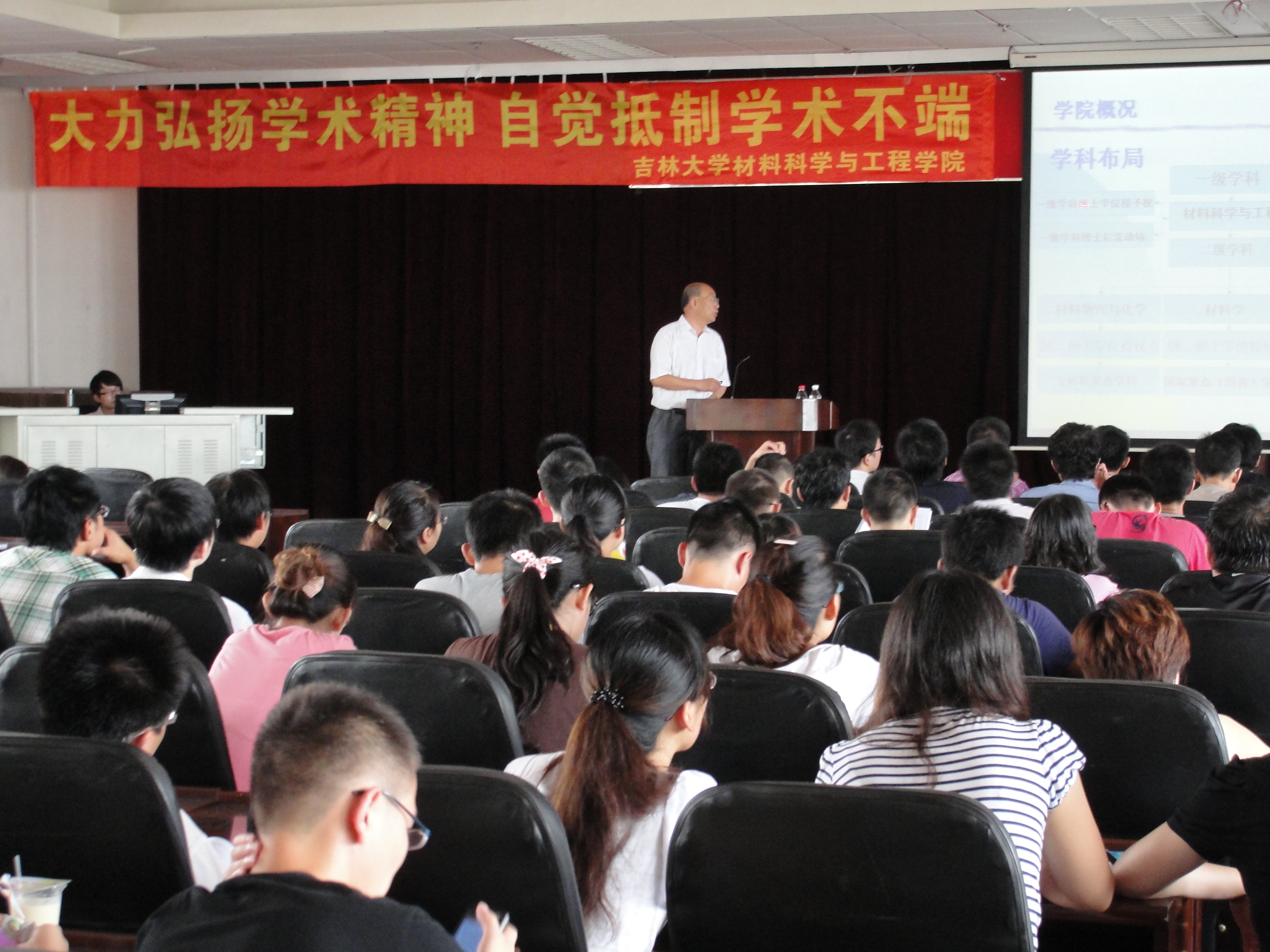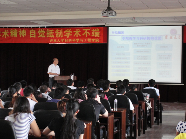 8月28日上午,我院在逸夫机械材料馆八楼成功举办“学术道德和学风建设”主题讲座。材料学院学术委员会主任、博士生导师姜启川教授,研究生办公室秘书刘徽老师,以及全体博士、硕士研究生新生参加了讲座。本次讲座由材料学院学术委员会主任、博士生导师姜启川教授主讲,研究生办公室秘书刘徽老师主持。