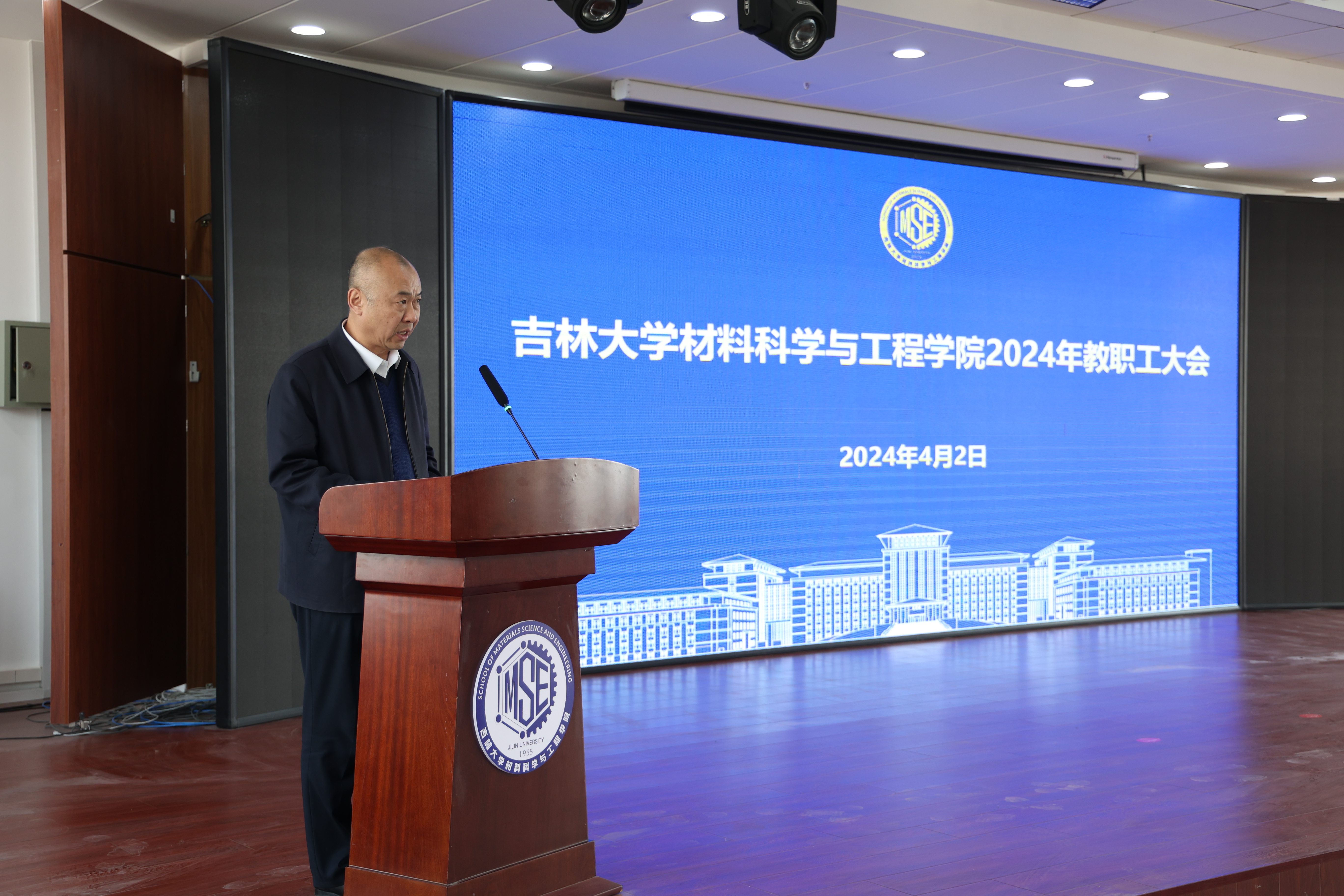 在材料馆八楼报告厅召开2024年全体教职工大会,全面总结学院2023年工作,安排部署2024年重点任务。学院全体教职工参加会议,会议由学院党委书记刘远主持。