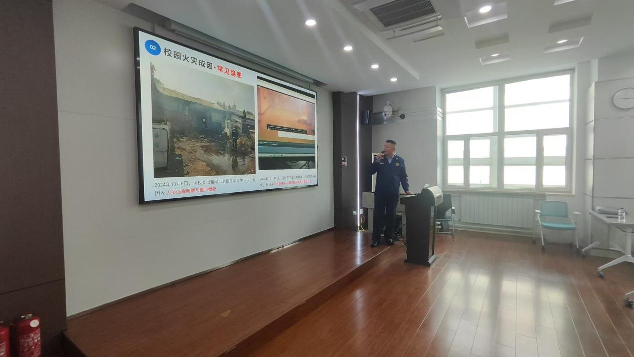 本次演练活动经过学院安全工作领导小组的周密策划和精心部署,制定了详细的演练方案,并得到了学校保卫处的大力支持与专业指导。保卫处董立明老师为确保演练效果、深化安全意识,在正式演练开始前,专门组织了消防安全培训会。培训会上,董立明老师通过剖析近年来高校发生的典型火灾案例,以触目惊心的事故画面和深入浅出的原因分析,为全体参与人员上了一堂深刻的安全警示教育课,极大地提升了师生对火灾危害性的认识和防范火灾的紧迫感。
