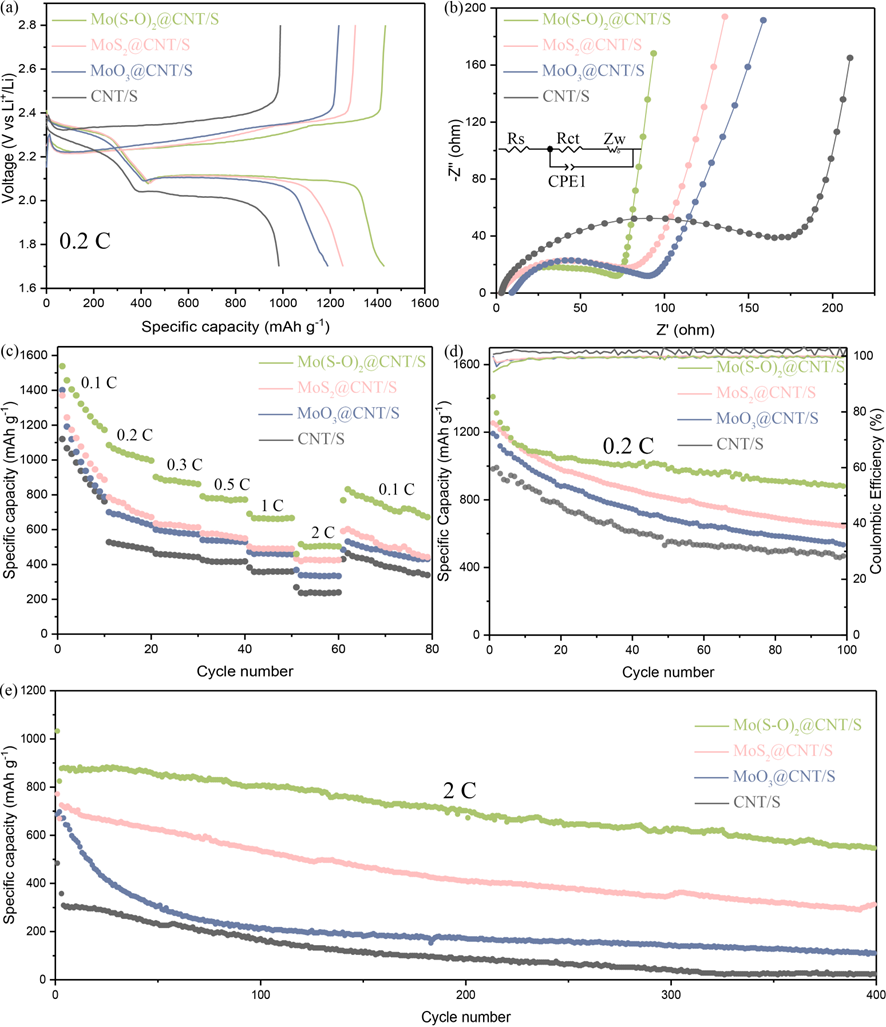图2 Mo(S-O)2材料组装锂硫电池性能