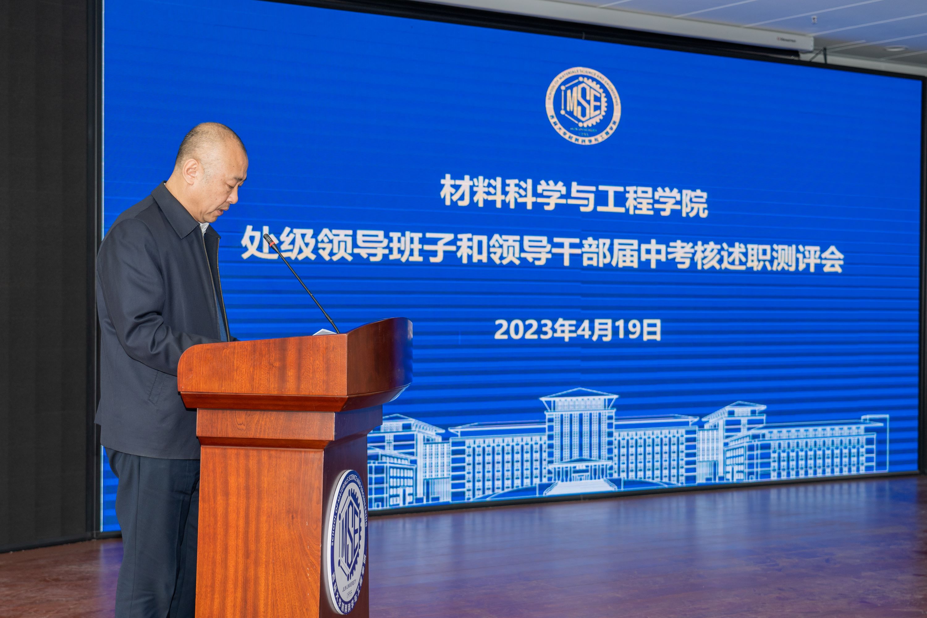 在材料馆八楼报告厅召开处级领导班子和领导干部届中考核述职测评会。学院教职工代表参加会议,会议由党委书记刘远主持。