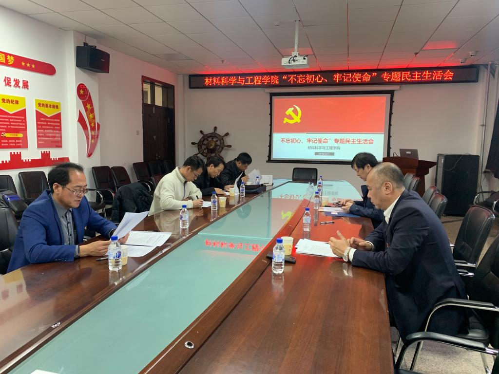 在材料馆410会议室召开“不忘初心、牢记使命”主题教育专题民主生活会。学校主题教育第十一指导组组长丁世海同志全程参加并指导。会议由党委书记刘远主持。