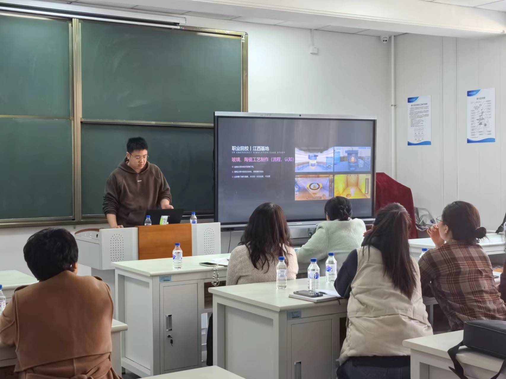 随后,会议邀请了上海曼恒数字技术股份有限公司开发部项目经理刘旭峰老师,从虚拟仿真开发的种类与模式、虚拟仿真实验项目建设与开发流程、虚拟仿真开发案例分享三个方面,向学院老师介绍了目前虚拟仿真实验项目的建设与应用情况。刘旭峰老师强调,虚拟仿真实验教学方法已经广泛应用于高等教育、职业教育的各个学科专业,可以有效解决高校受硬件条件限制,无法完成部分实验项目的教学需求,并就虚拟仿真实验项目的建设流程进行了详细讲解与说明。