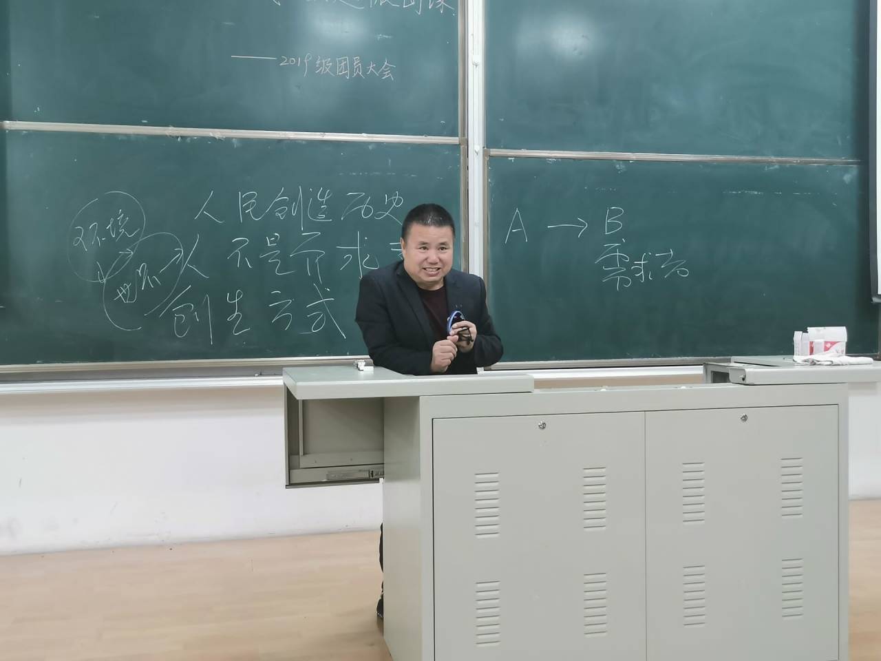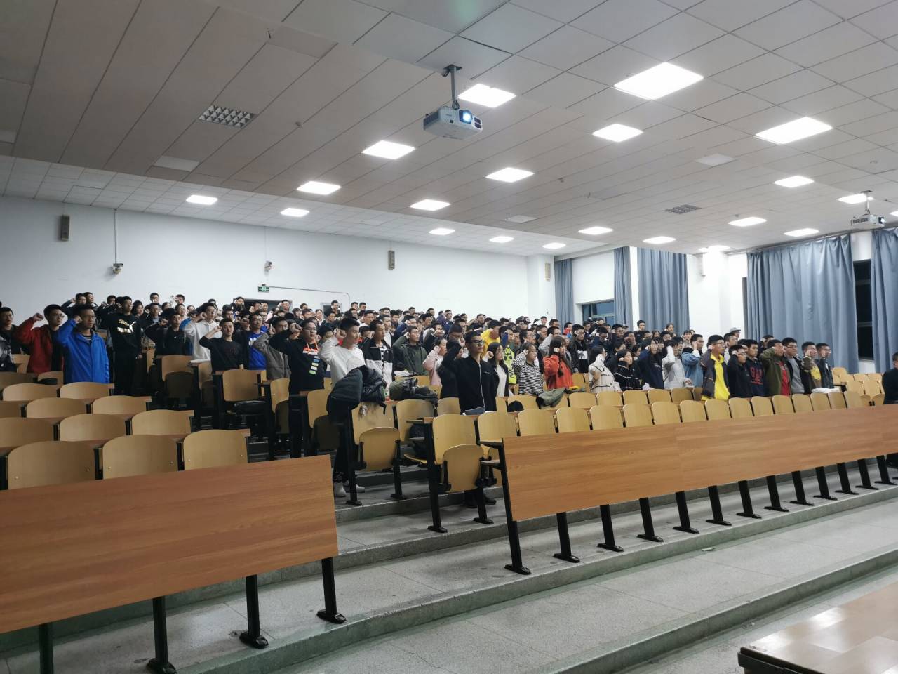 本次活动在全体2019级新生的热烈掌声中拉开序幕。活动伊始,主持人介绍了此次活动的活动流程和岀席老师。随后,主持人带领2019级全体学生重温入团誓词。每一位参加宣誓的同学在这庄严神圣的氛围中,接受了一次思想的洗礼心灵上的震撼。团课第三项,马克思主义学院杨洪兴老师为大家带来了一节精彩而又深刻的主题团课讲解。杨老师的讲解激情澎湃、对团课内容的说明深入浅岀同学们都聚精会神,教室中时不时响起一阵阵激烈的掌声。