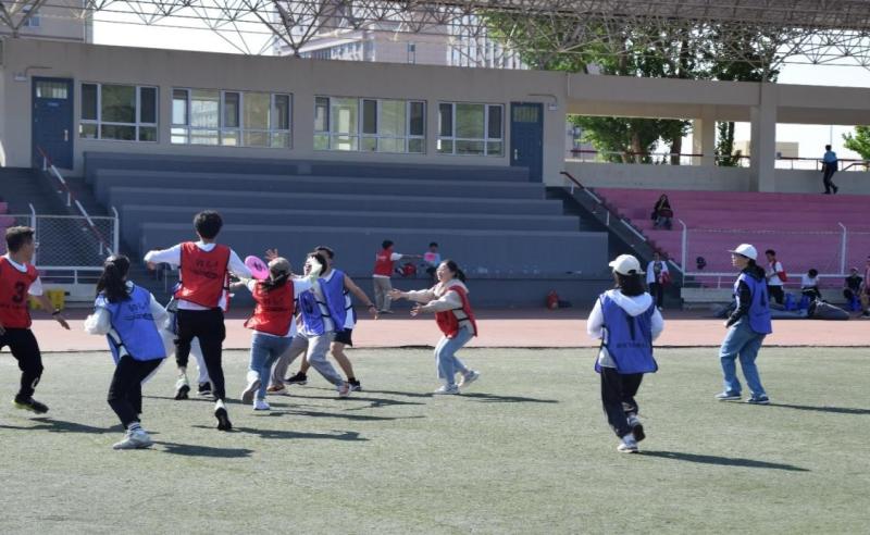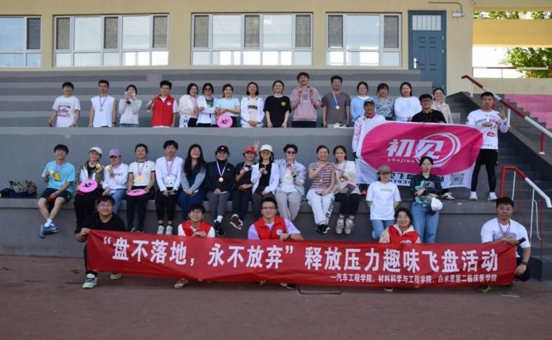 南岭校区体育场举行了“盘不落地,永不放弃”释放压力趣味飞盘活动。