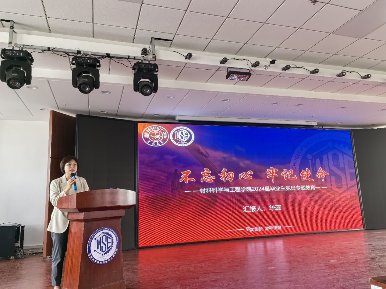 2024620日下午,黑料718 面向2024届毕业生党员,于材料馆八楼报告厅开展了离校前最后一次党课主题教育活动。学院党委书记刘远老师作为主讲人,学院党委副书记兼纪委书记曲贵文,党委副书记兼副院长华蕊和学生工作办公室全体辅导员出席。