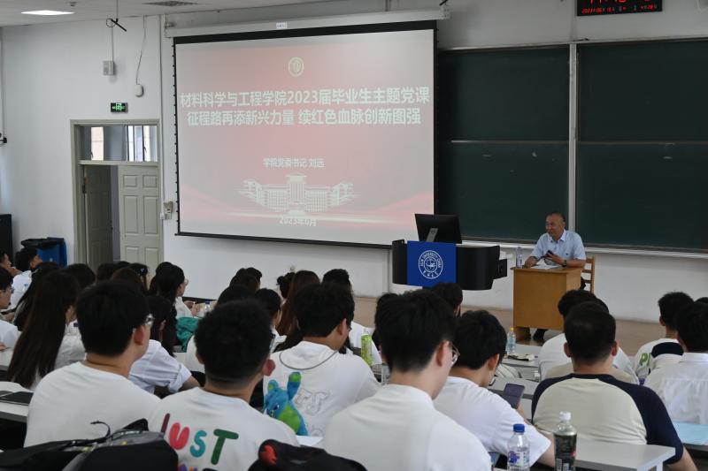 会议第二项学院党委书记刘远老师以“征程路再添新兴力量 续红色血脉创新图强”为主题上了一堂生动的主题党课,刘远书记首先代表学院对毕业生们表示祝贺,随后,带领同学们回忆了党史、校史和院史,向大家介绍了学院的科研成果与优秀毕业生代表,并祝愿毕业生们能够在未来发展自己,牢记作为一名共产党员所肩负的使命和荣光,要努力成为学校的骄傲、成为国家的栋梁、成就精彩的人生。