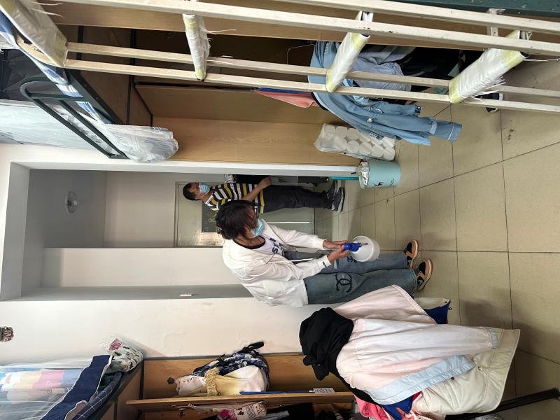 “寝室一小时”微思政:根据本年级的实际情况,05月24日下午,严老师来到南岭校区十一公寓男生寝室、十二公寓A区女生寝室走访,开展全年级寝室大清扫检查和寝室内区域的预防性消杀工作。在本次走访工作中,严老师对寝室大清扫的效果予以肯定,同时向同学们解释了预防性消杀的意义和作用,本次预防性消杀是根据本年级实际情况和近期发生的水痘、呼吸系统疾病等情况,在校医院的指导下,开展的预防性消杀工作,严老师提醒同学们无需恐慌但需要继续落实“每个人都是自己健康的第一责任人”的意识,并注意保持寝室打扫、定期通风等良好的生活习惯。