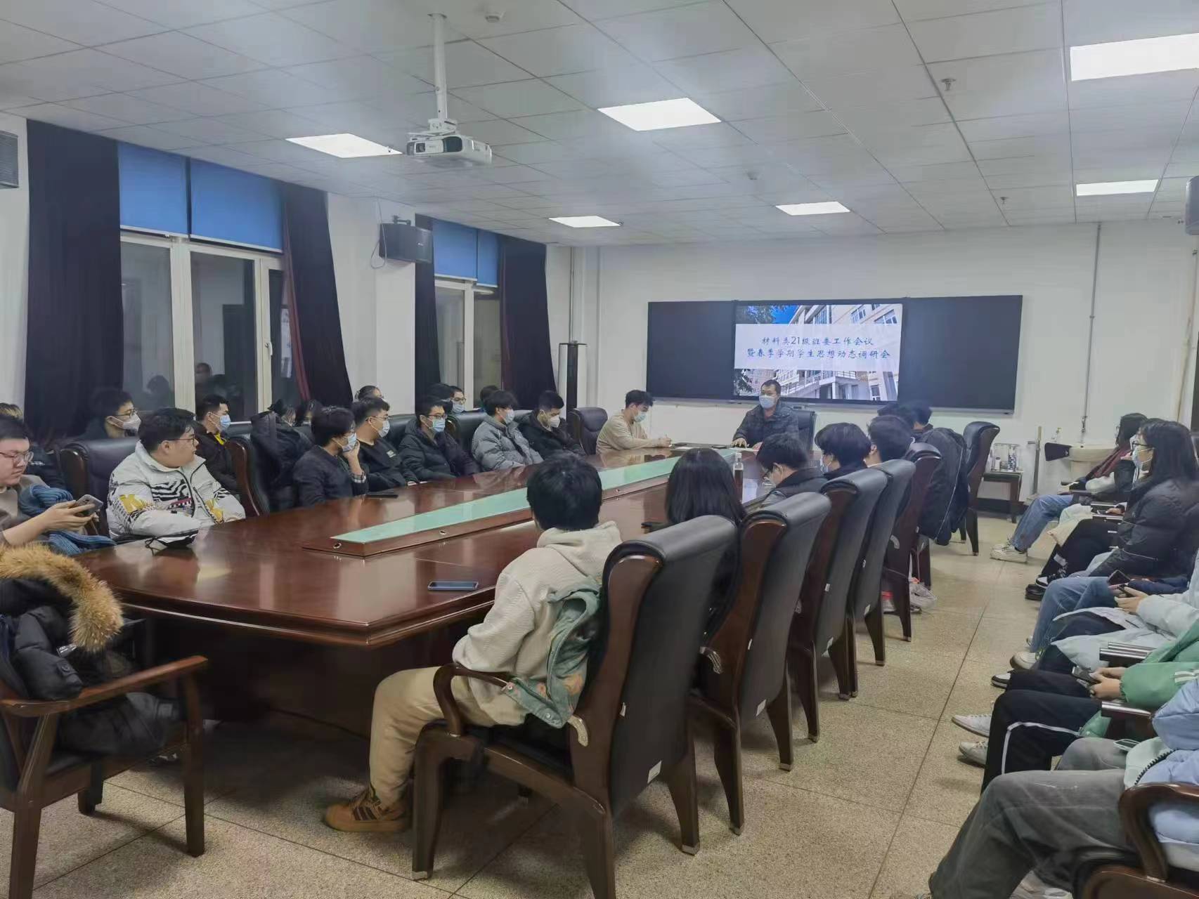 于2023年3月2日晚于南岭校区逸夫机械材料馆410会议室,召开了材料类2021级班委工作会议暨春季学期学生思想动态座谈会,材料类2021级本科生辅导员严冬老师及材料类2021级班委会成员、部分学生代表参加了本次会议。