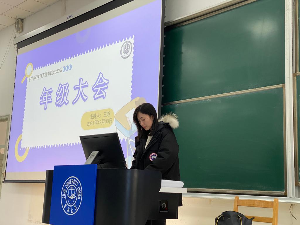 大会伊始,辅导员王晗向同学们强调了考风考纪相关事项,通过具体事例提醒大家自觉遵守考场纪律,杜绝考试违纪、作弊行为。随后,王老师就元旦和寒假安排进行了说明,提醒大家合理规划时间进行复习,要在假期中注意个人防护和用水用电安全,及时关注疫情变化,顺利返家。