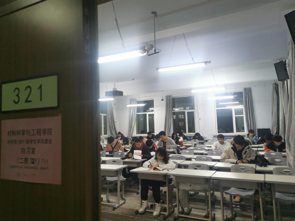 为做好“2021级学风建设自习室”的监督管理工作,材料类21级学风建设工作组将安排专人轮值负责“2021级学风建设自习室”的使用和管理,充分发挥自习教室在学风建设中的平台作用。