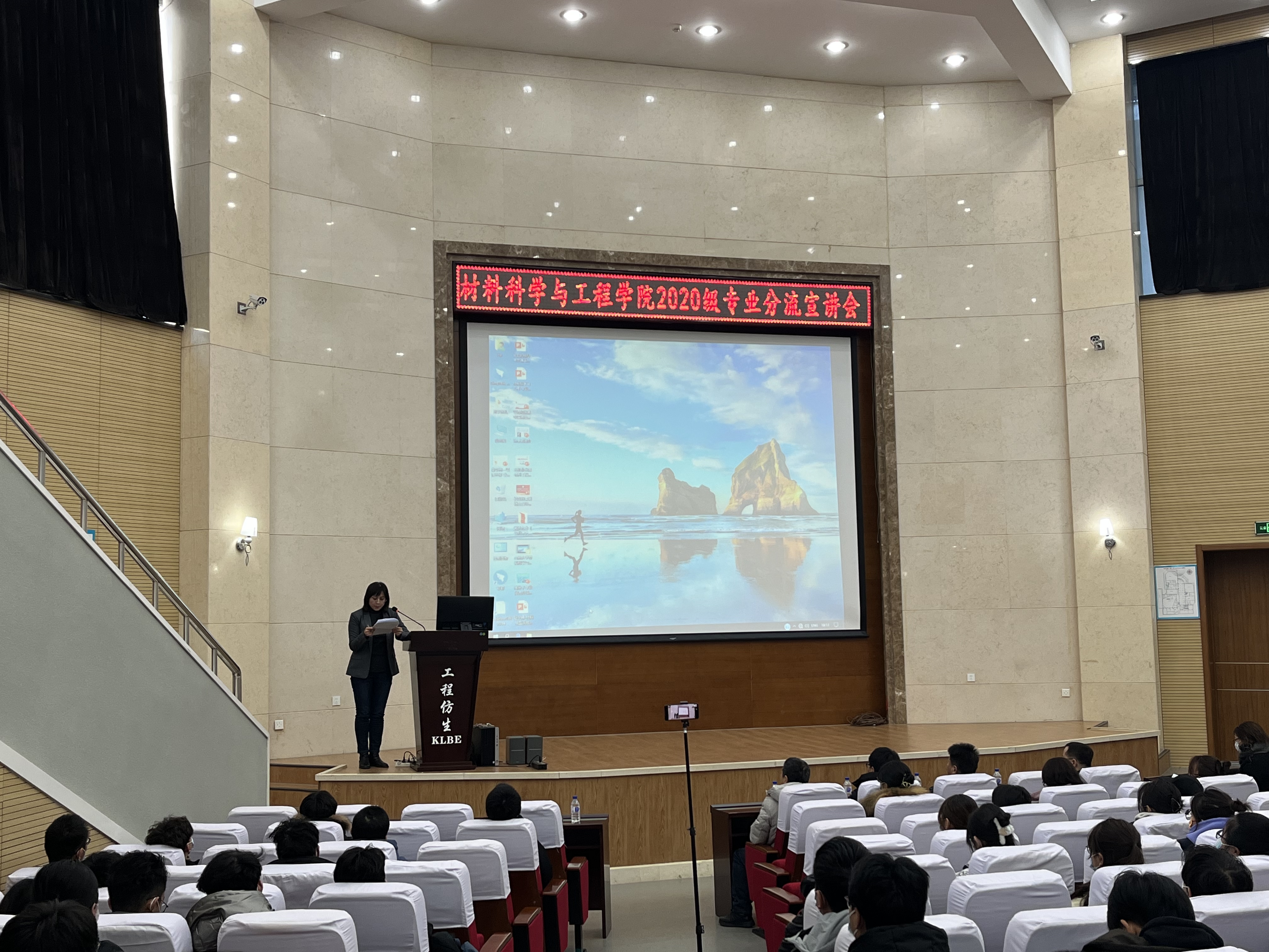 11月12日上午十时,黑料718 在仿生楼一楼报告厅召开2020级材料类专业分流宣讲咨询会。本次会议特邀高分子材料与工程系主任于开锋教授,材料成型及控制工程系主任赵小辉教授,金属材料工程系主任王国勇教授,无机非金属材料工程系主任苗世顶教授,教务办公室于漫老师、刘建明老师,2020级辅导员王晗和2020级全体本科生参加,会议由党委副书记兼副院长华蕊老师主持。