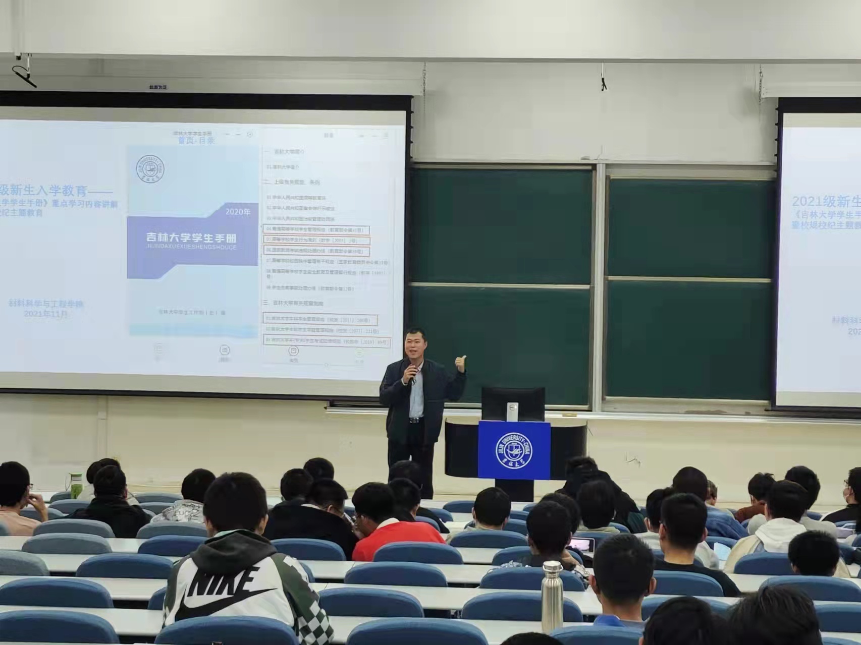 按照《黑料718 2021级新生入学教育工作方案》等相关工作要求,为了让新生同学能够更快的适应大学学习,使新生同学完成从高中到大学,学习和生活模式的转变,引导学生提高自我管理、自我教育、自我服务能力,结合近期相关事件案例,特组织2021级材料类专业学生集体学习《学生手册》。