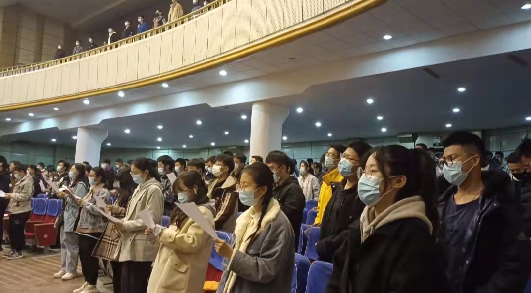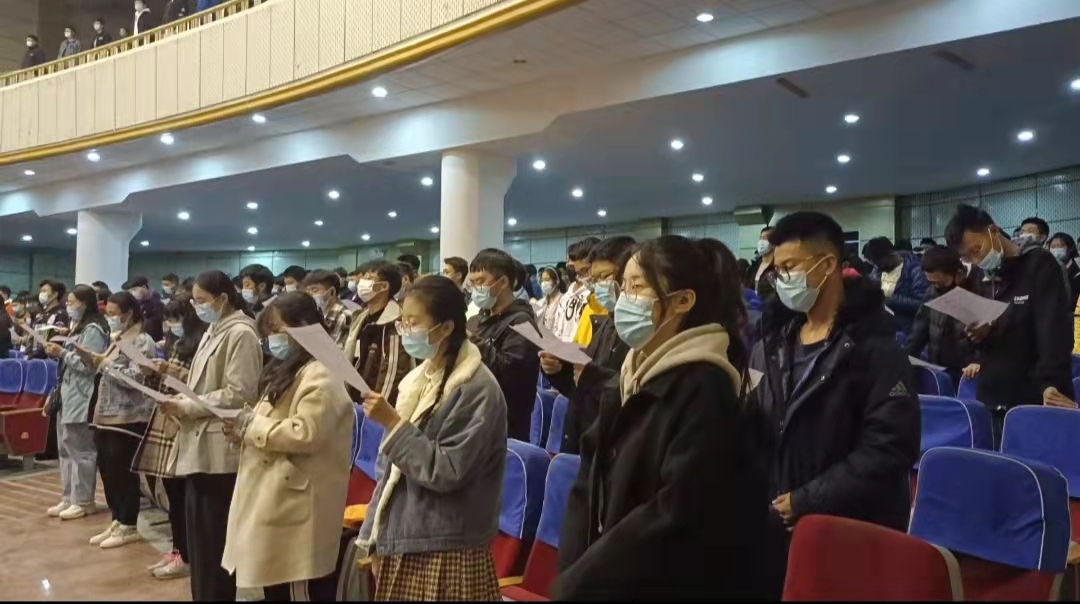 1023日下午,学院面向全体2021级新生开展了学唱校歌活动。在校歌的学习过程中,新生们认真聆听,每名同学在学习时都充满了热情,认真地参与到学唱校歌的过程中。