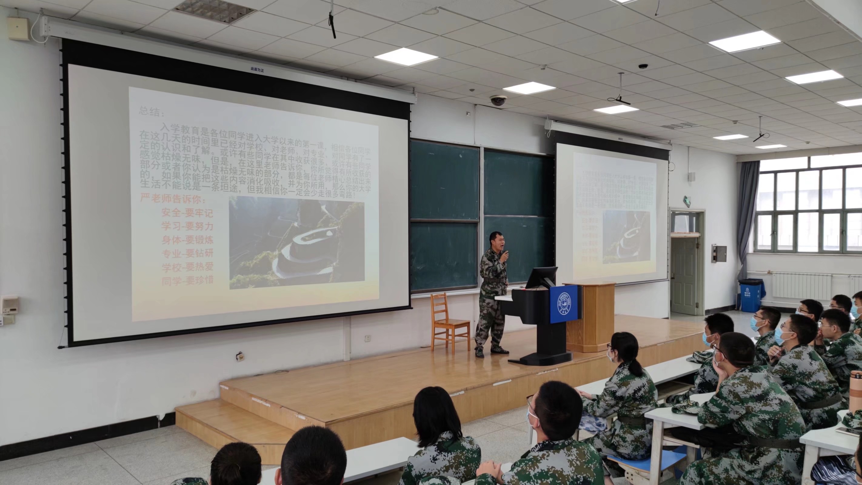 于2021年9月28日8时分别在逸夫教育大楼A206、A411教室召开思政课,2021级辅导员严冬主讲,全体2021级新生参加本次活动。