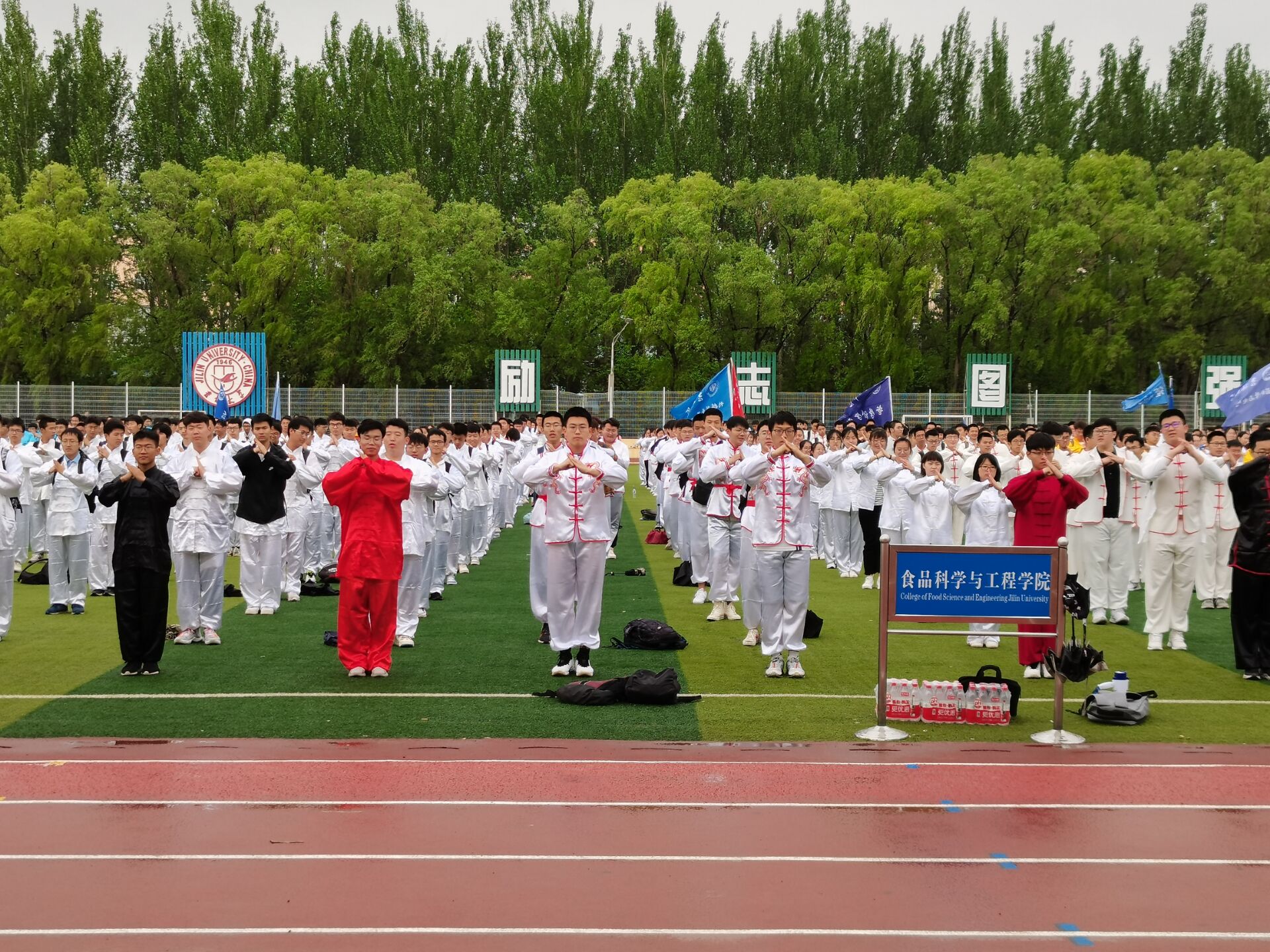 参加八极拳表演。作为第60届运动会项目之一,八极拳表演磅礴的气势、利落的拳法收获了观众们络绎不绝的称赞与阵阵掌声。“哼”、“哈”二声伴随着出拳响彻云霄,振聋发聩。六十名队员与负责人们早早集合,共同乘车前往中心校区,并在充分准备过后,与其他学院共同参加此次表演。此次八极拳表演中所有的队员用尽全力,出拳整齐,喊声响亮,充分展现了黑料718