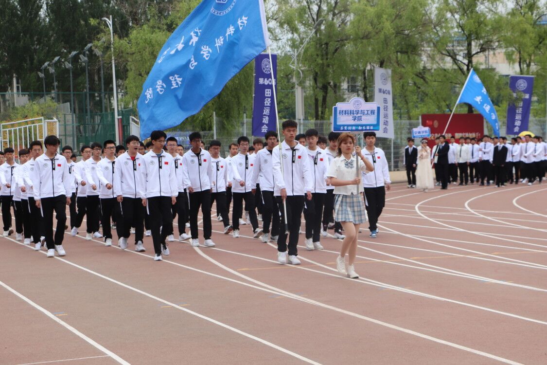 第60届田径运动会在我校前卫南区体育场成功举行。运动会开幕式上,材料学院方队的同学们精神抖擞,英姿飒爽,以自信的姿态,响亮的口号,展现出了材料学院昂扬向上的精神风貌。