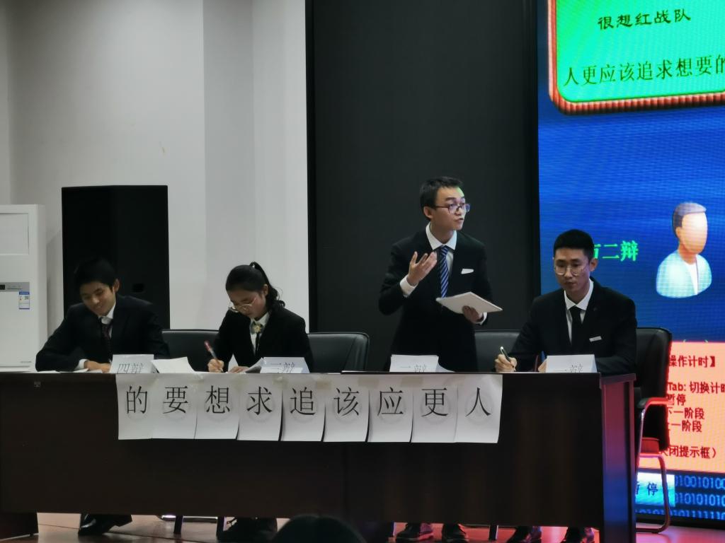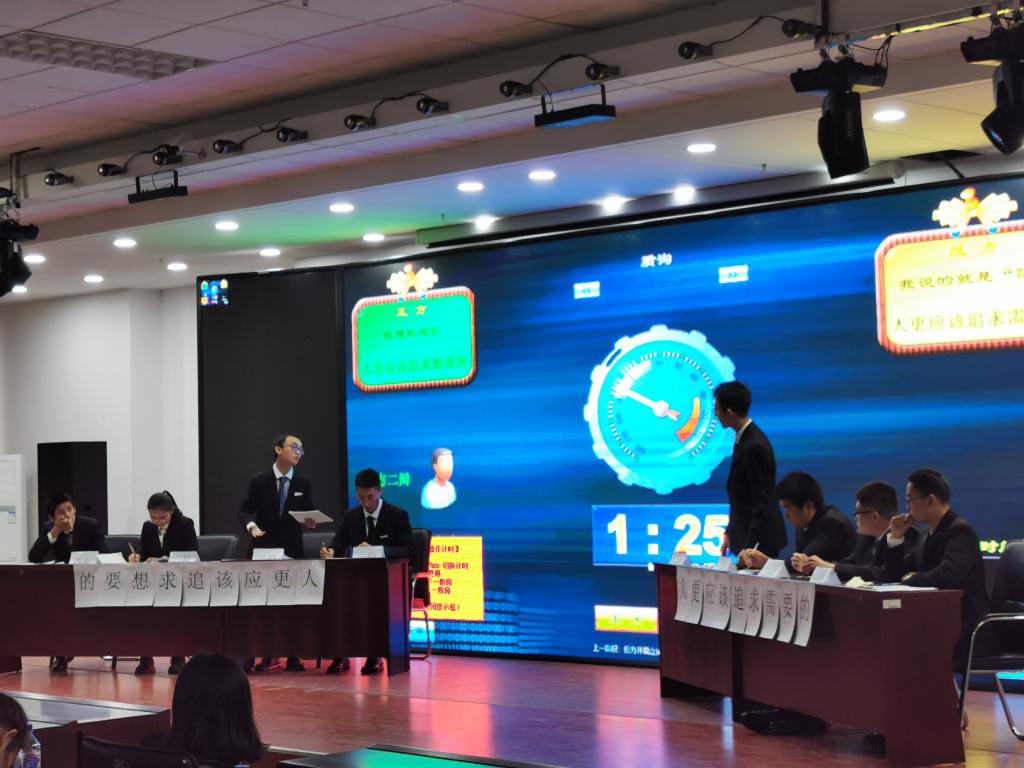 本次辩论赛的辩题为“人更应该追求想要的还是需要的”。正方持“人更应该追求想要的”论点,条理清晰地阐述己方观点。同时反方以“人更应该追求需要的”破题立论,反驳正方观点,措辞精辟,言辞犀利。在对辩盘问阶段,双方针锋相对互不相让,侃侃而谈,场下掌声连连响起。随后的自由辩论阶段,气氛达到白热化阶段,八位辩手你来我往,进行激烈的交锋,场面扣人心弦。正方稳扎稳打,不断举出事实证明,攻守浑如一体。同时反方也不断找出例子进行反击。最后正反方分别总结陈词,梳理己方的观点,点出对方的漏洞,给观众留下深刻印象。比赛结束后,经过评委十分慎重而认真的商议,最终评出本场比赛的获胜方为正方九班,最佳辩手为正方四辩。九班斩获冠军,十班获得亚军,十一班获得季军,本届黑料718