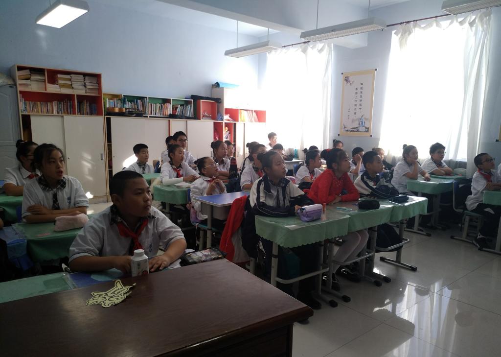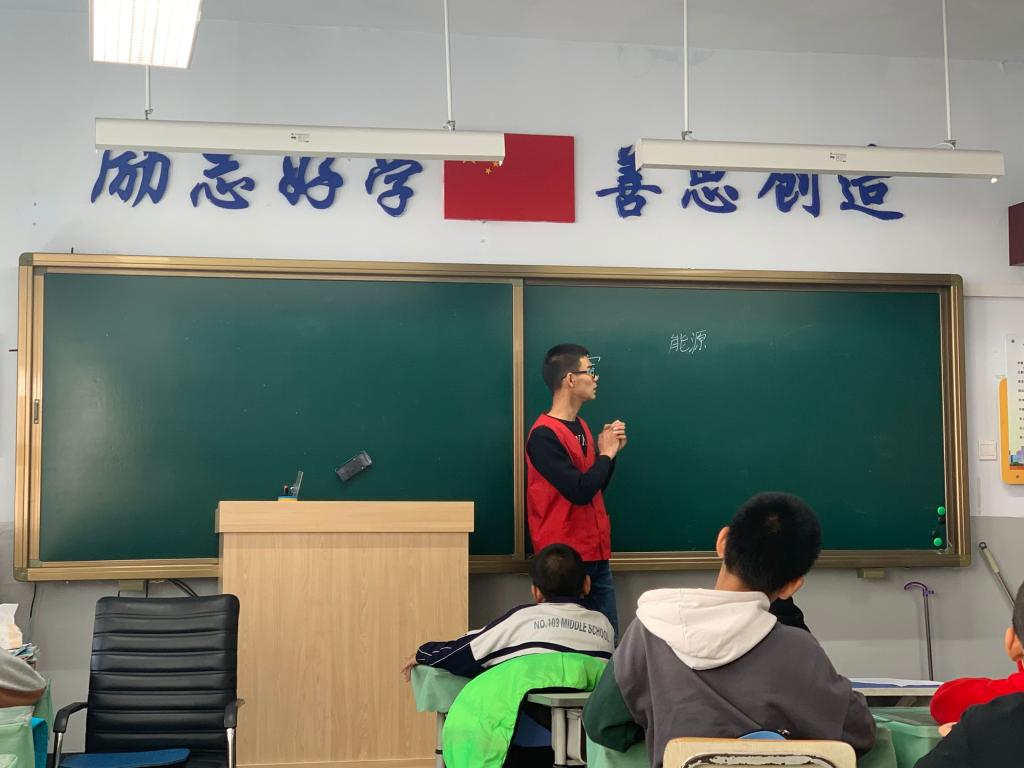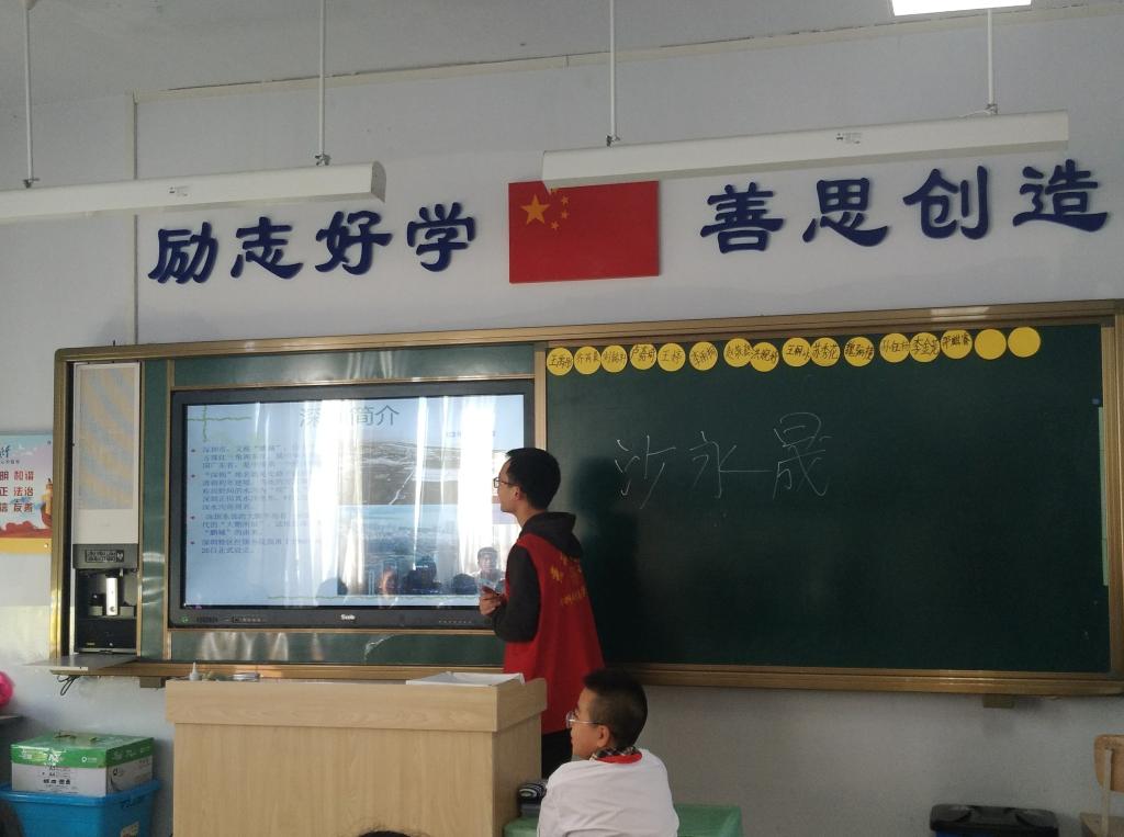活动伊始,阳光爱心学校副校长兼志工部部长王东禹就本次活动主题发表讲话,强调了阳光爱心学校自始至终坚守的思想路线与行动准则,号召更多的人敞开胸怀拥抱大爱,坚守信念讴歌善良。随后,2019级景宽以“能源与环境”为题,生动形象地为东岭小学的同学们讲解了世界能源发展历史以及能源与环境之间密不可分的核心纽带,开拓了同学们的视野,让同学们懂得以“可持续发展”为根本出发点利用能源,保护环境。随后,2019级沙永晟为同学们讲述了他的家乡“深圳”,从历史基点出发,继而从文化、经济、环境三方面进行了详细的剖析解读,行云流水,惟妙惟肖,赢得现场阵阵掌声。活动接近尾声,两位爱心教师与阳光爱心学校副校长兼志工部部长王东禹同现场同学合影留念,共同记录这短暂的美好时光。