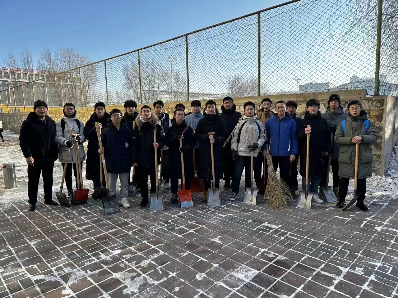 组织2023级的学生志愿者在南岭校区机械材料馆门前开展了一次志愿扫雪。