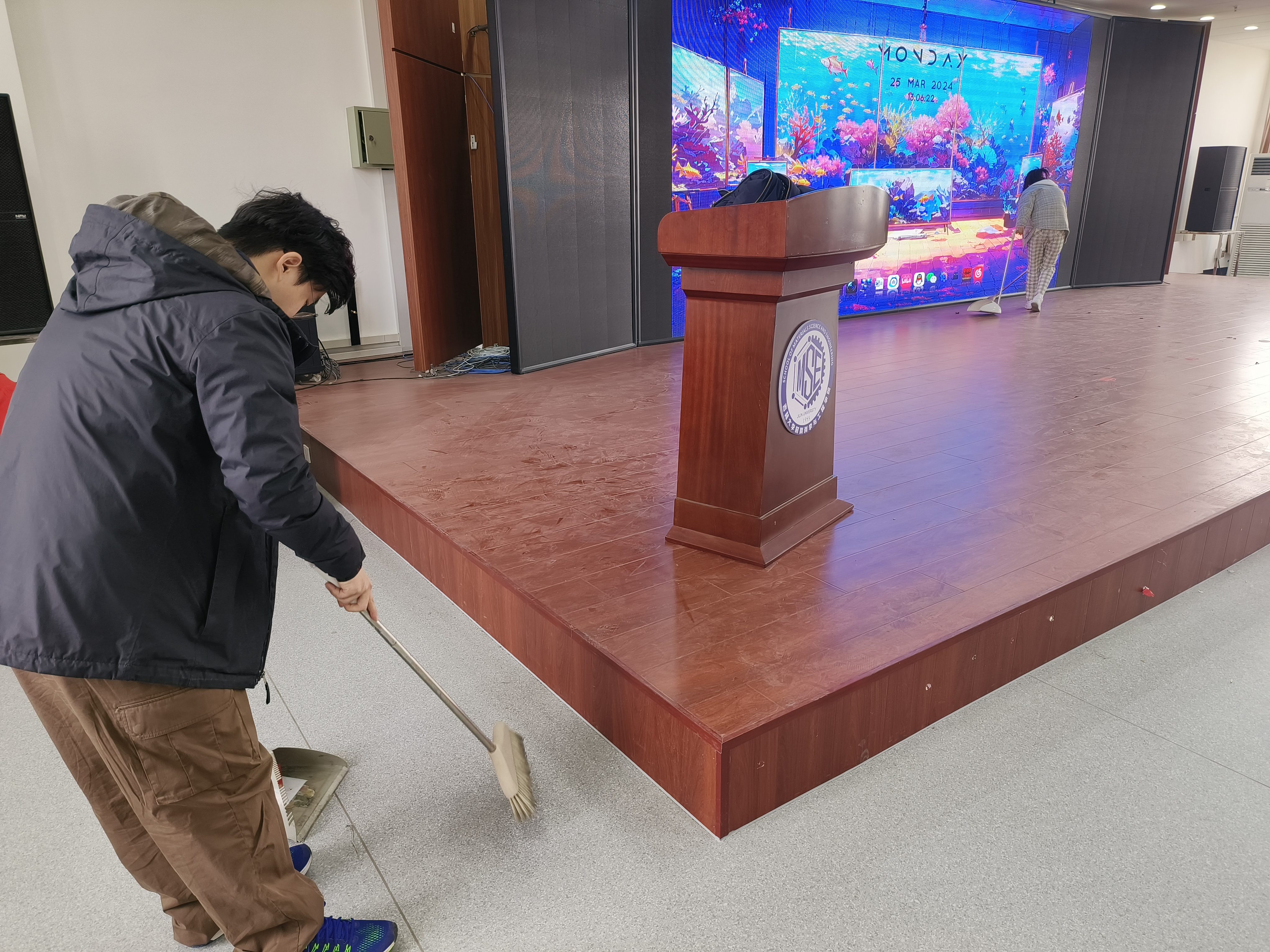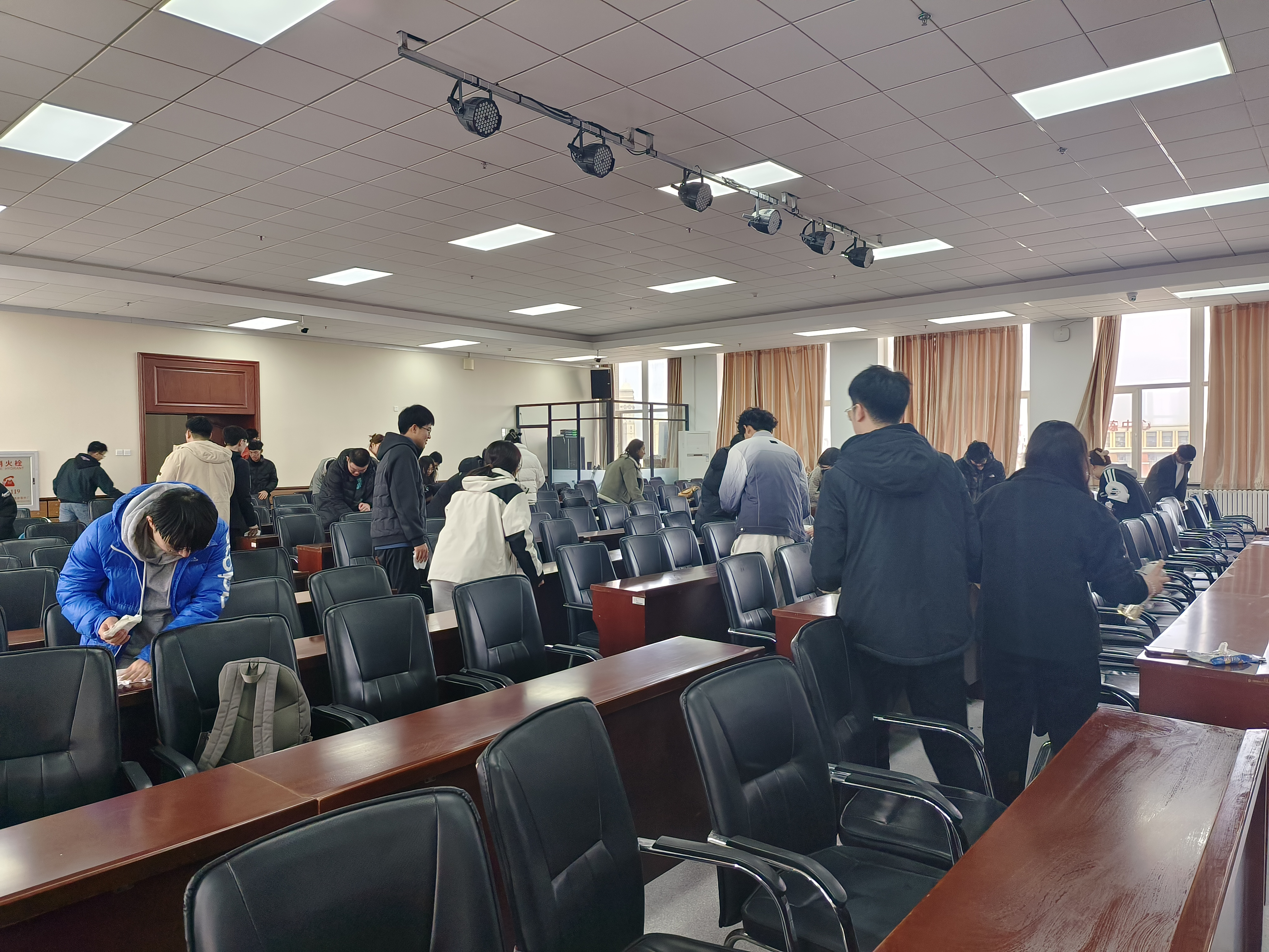 在劳动现场,同学们干劲十足。大家不怕脏不怕累,热情高涨,以劳动为荣,用实际行动诠释党员吃苦在先、勇于担当的奉献精神。在大家的努力下,逸夫机械材料馆八楼会议室焕然一新。