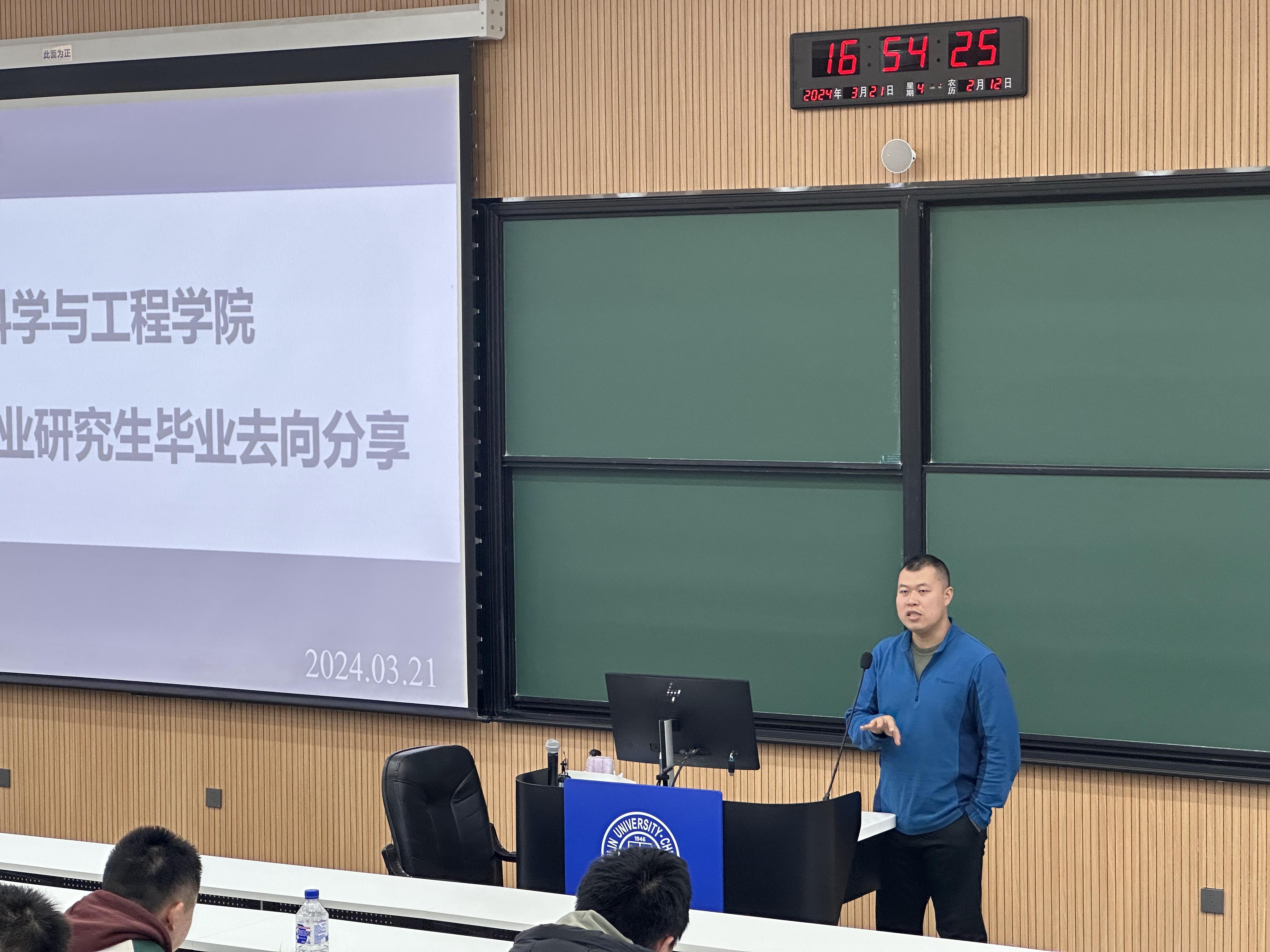 于2024年3月21日下午举办材料类相关专业研究生毕业去向分享会。会议由2023级本科生辅导员严冬老师主持,三位优秀研究生代表分享。