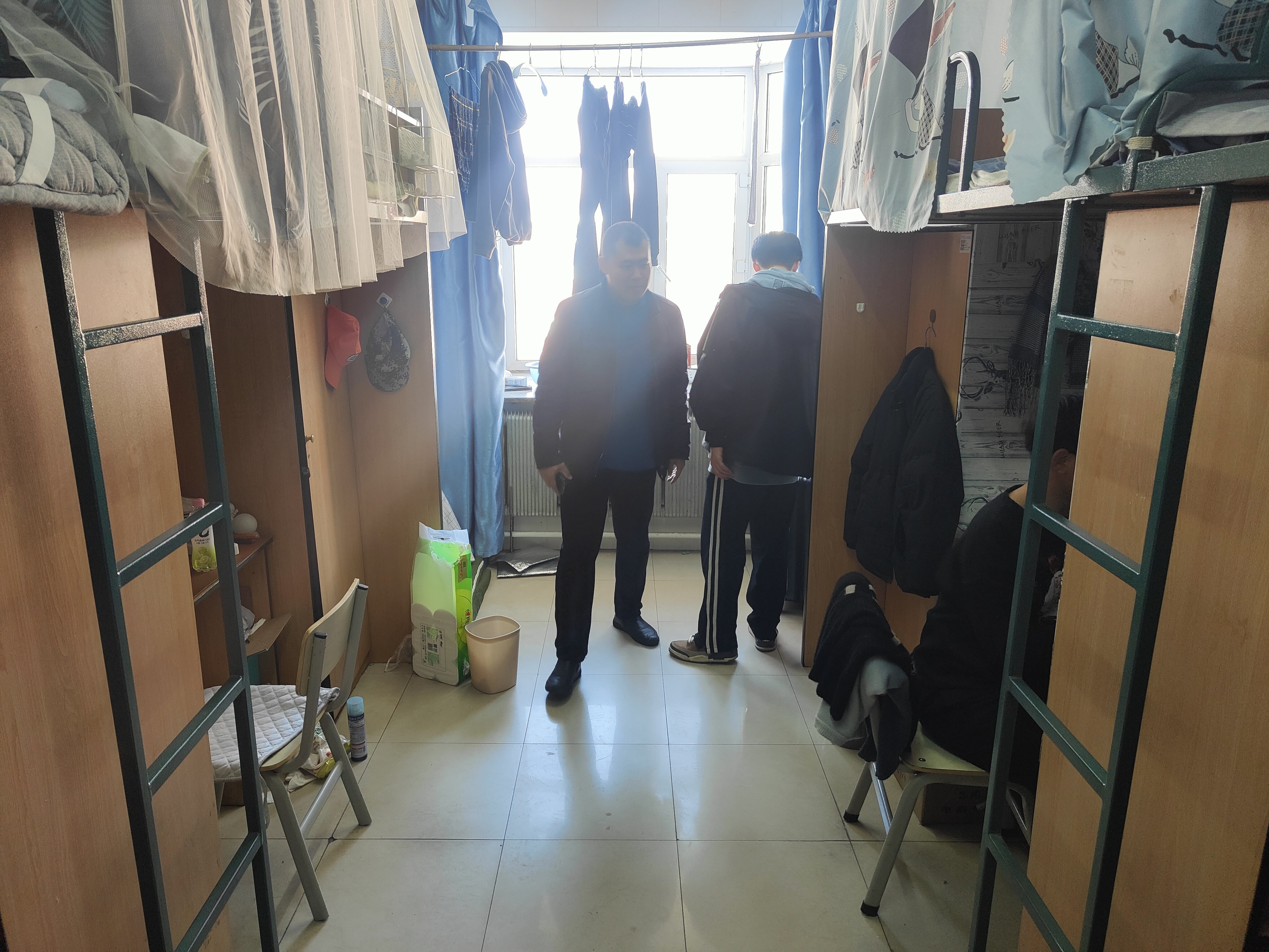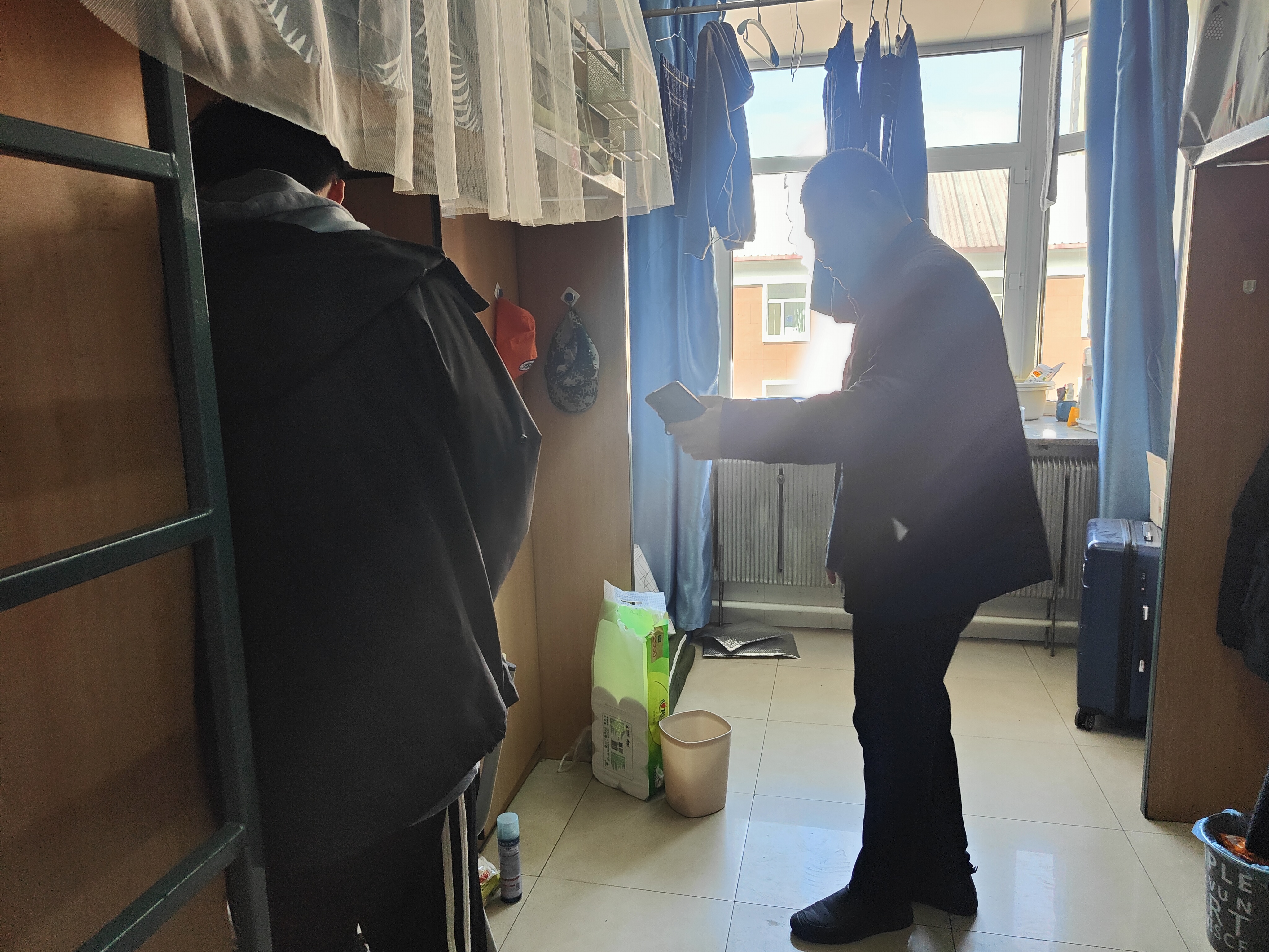 本次走访严老师逐一走访了本专业所有寝室,查看同学们的在寝情况,提醒在寝同学配合学校消防演练工作。同时,严老师仔细检查了各寝室是否存在消防隐患。严老师强调,校园安全、消防安全永远在第一位。