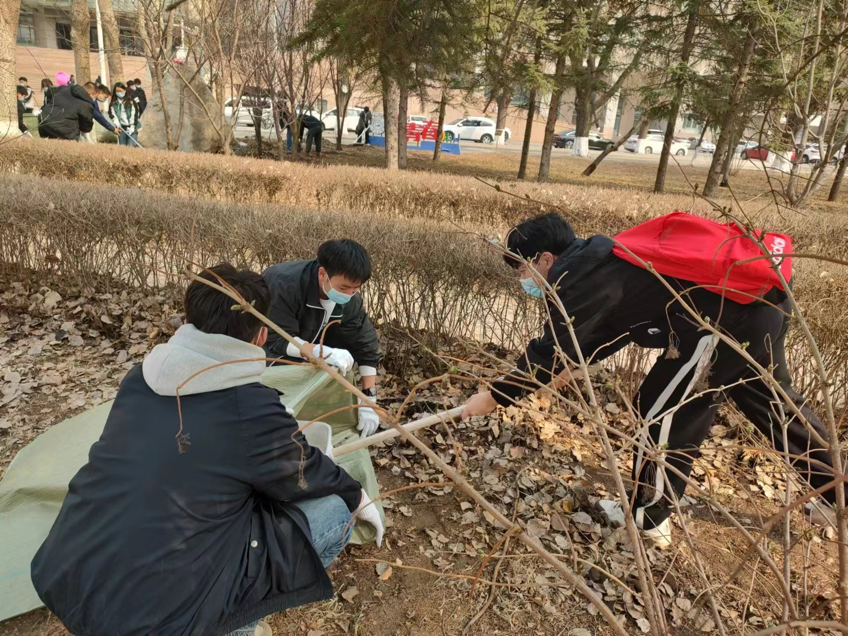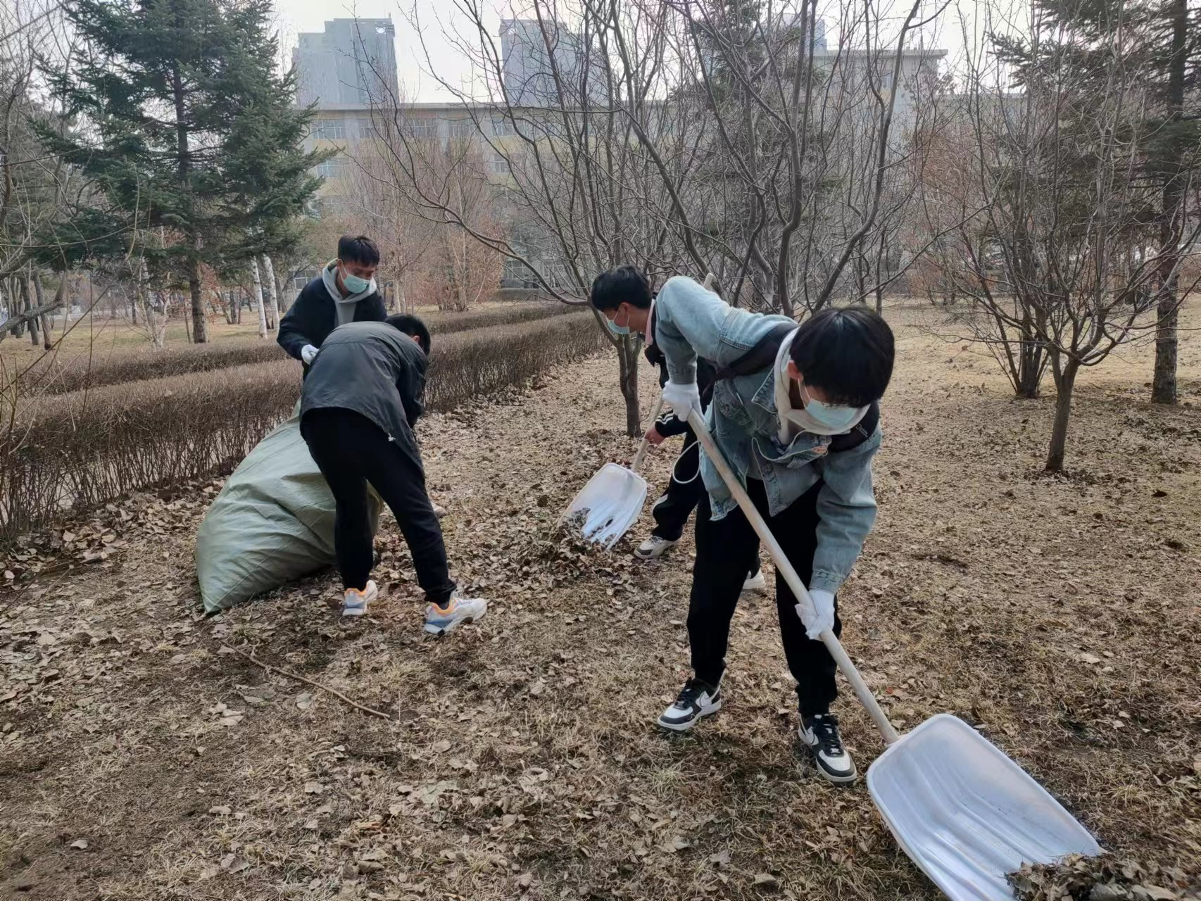 组织学生志愿者于2024年4月10日下午在逸夫教育大楼前参与“美丽校园行 迎春扫落叶”活动。