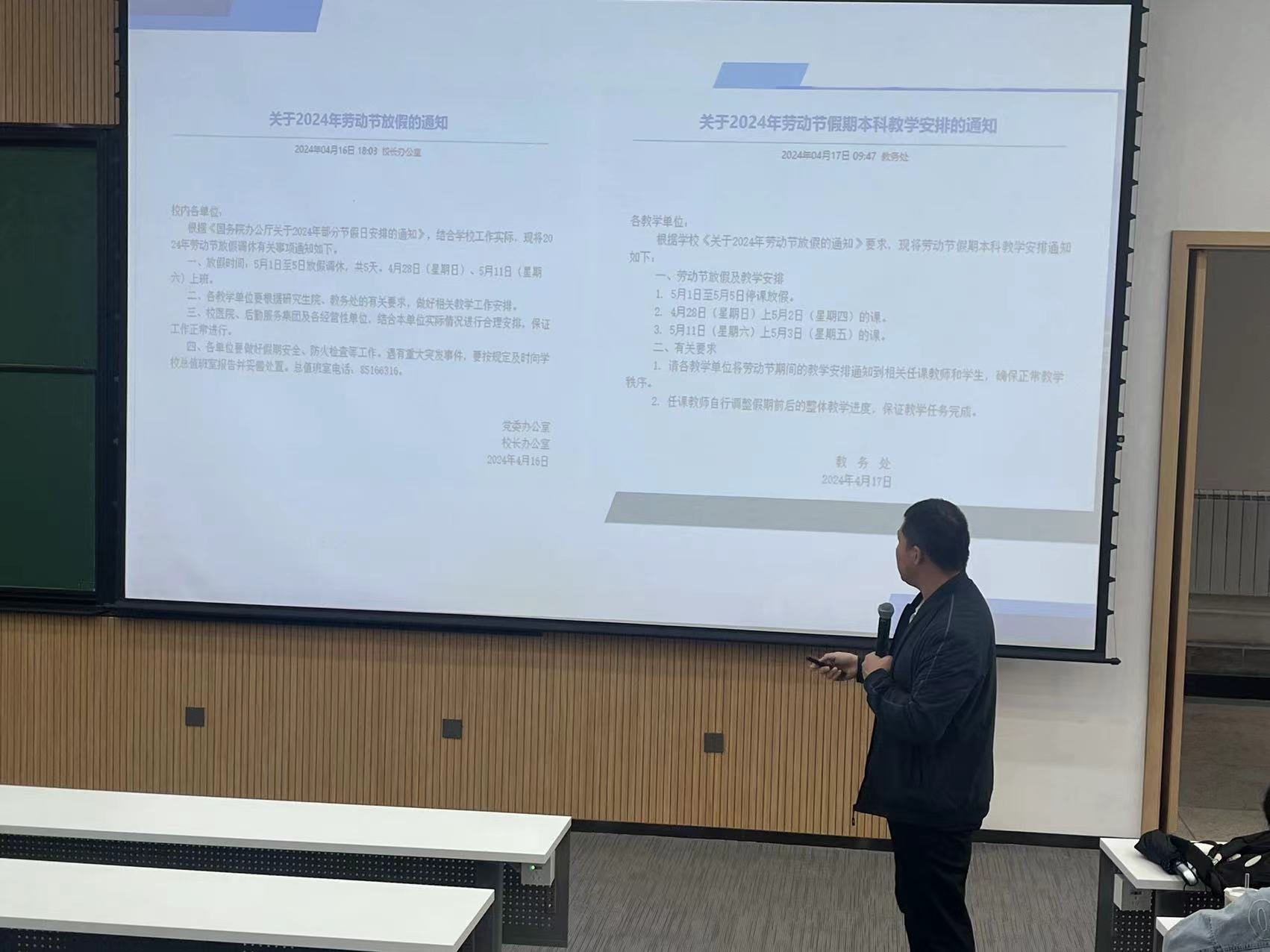 为继续做好学生的安全稳定工作,做好重要时间节点的学生安全教育,料科学与工程学院于2024年4月20日在南岭校区逸夫教育大楼B211教室开展材料类2021级安全教育大会,由学院2021级、2023级材料类专业辅导员严冬老师主持。