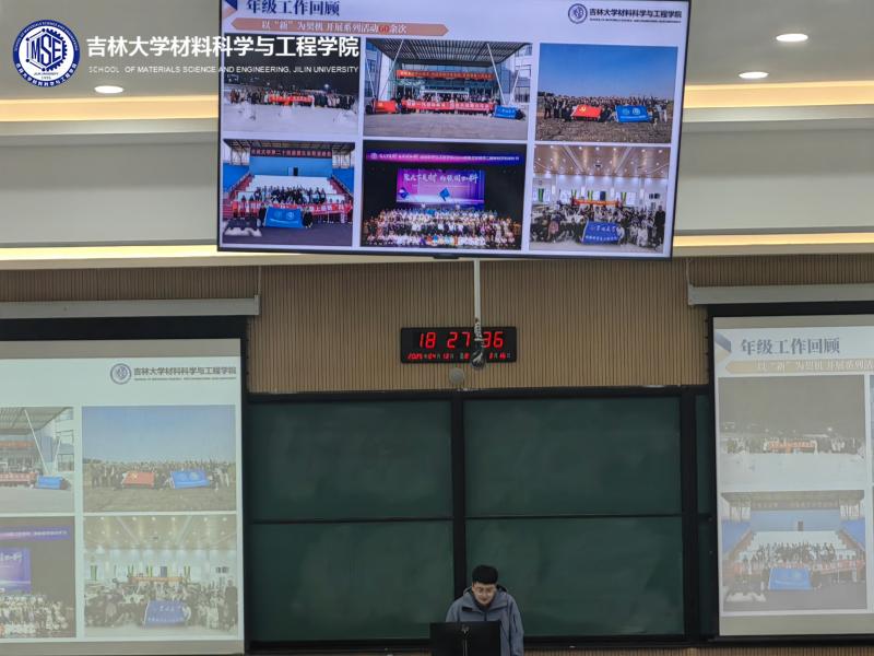 同时,唐老师带领同学们回顾了大一上学期举办的所有活动,展示了大一学年24级学生取得的成果。他鼓励同学们加强体育锻炼的同时,积极参与科研竞赛活动,提高自身能力,在充实的大学生活中实现自我的成长与突破。