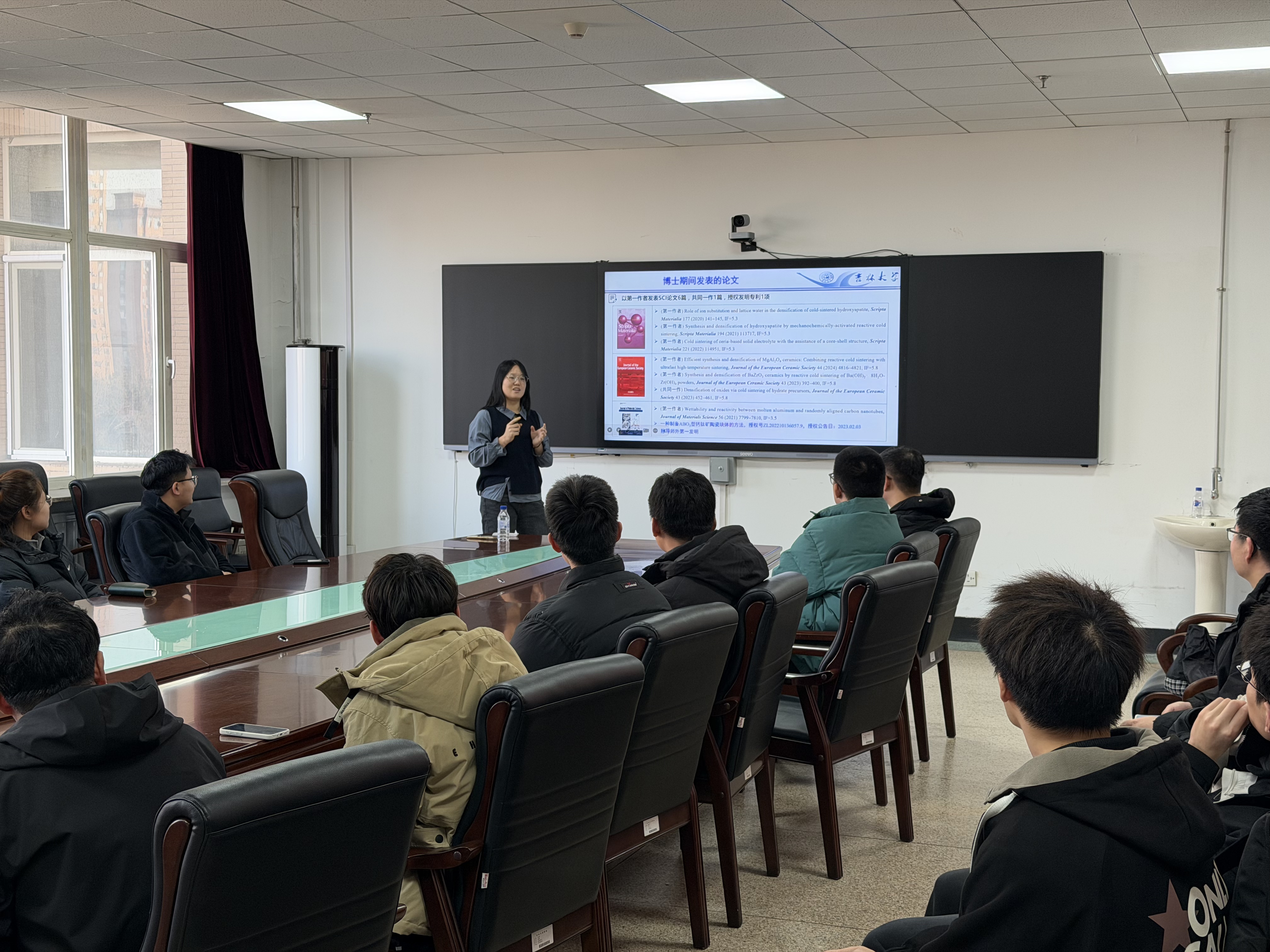在材料馆410会议室举办“材以研成”系列活动第四期 —— 研究生生涯规划与学术发展培训。本次培训由学院博士后申慧珍老师主讲,研究生辅导员赵熙来及部分研究生参加。