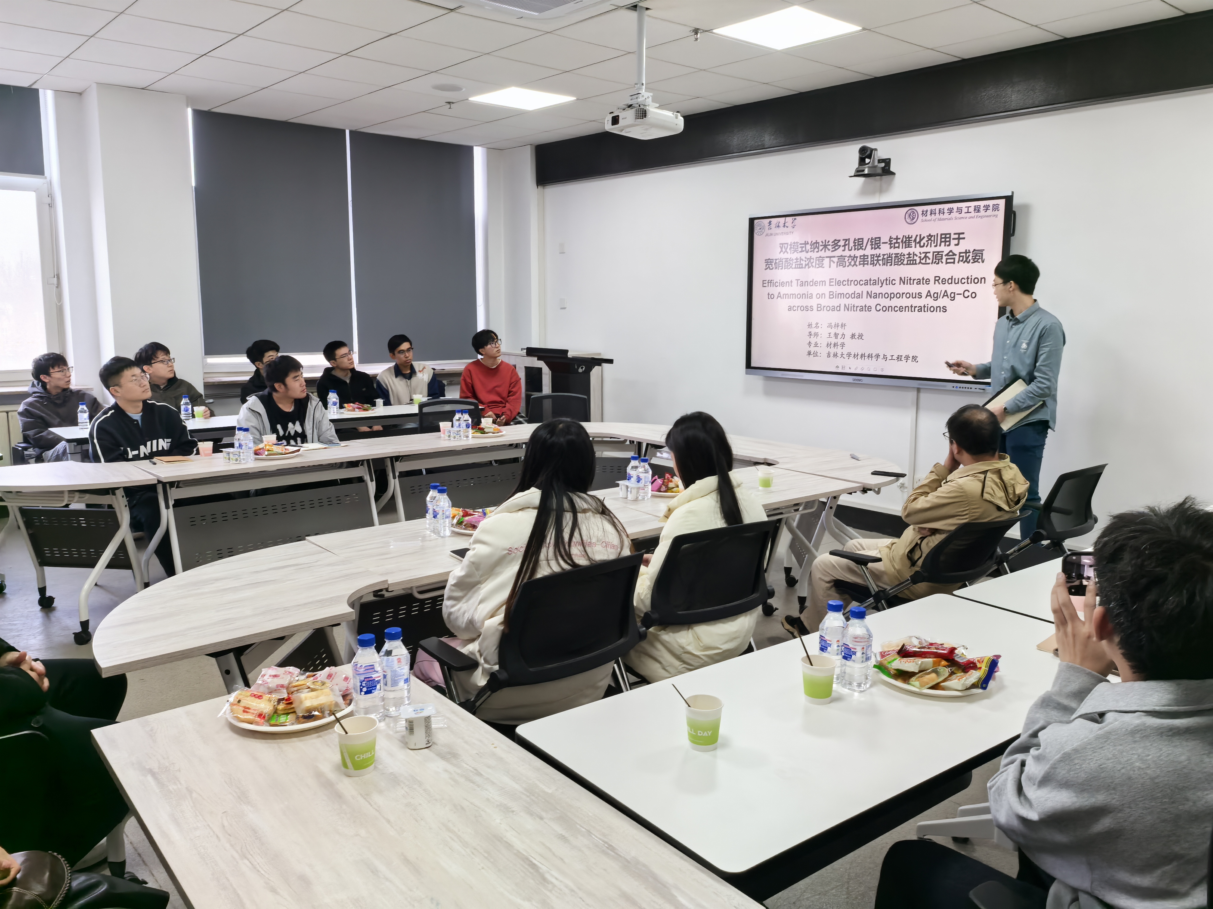 第十一期“博材研辩”研究生学术沙龙于2024年11月20日下午在黑料718 南岭校区机械材料419,2024年11月22日下午在黑料718 前卫南区唐敖庆楼D429举办。本期学术沙龙南岭会场邀请了2022级材料加工工程博士钟诗江进行学术分享,主持人为沈平老师;南区会场邀请了2022级材料与化工专业硕士赵禹曈进行学术分享,主持人为于陕升老师。钟诗江同学分享的主题是Ni-Mn基合金具有多功能特性,可用于驱动器、传感器、固体制冷、能量搜集装置...